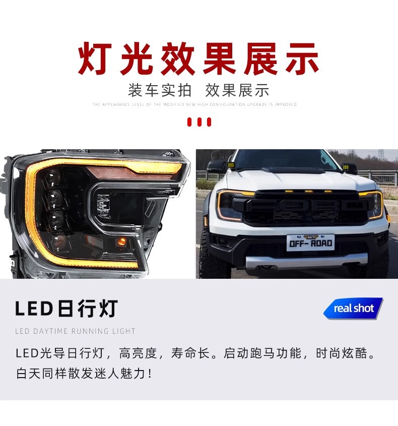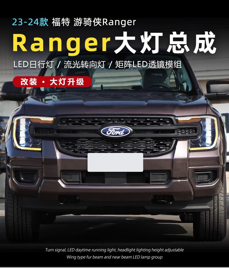 Suitable for Ford Ranger Ranger Modified Headlight Assembly Daytime Running Light Led Streamer Lens Spotlight Modification