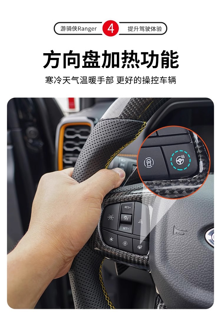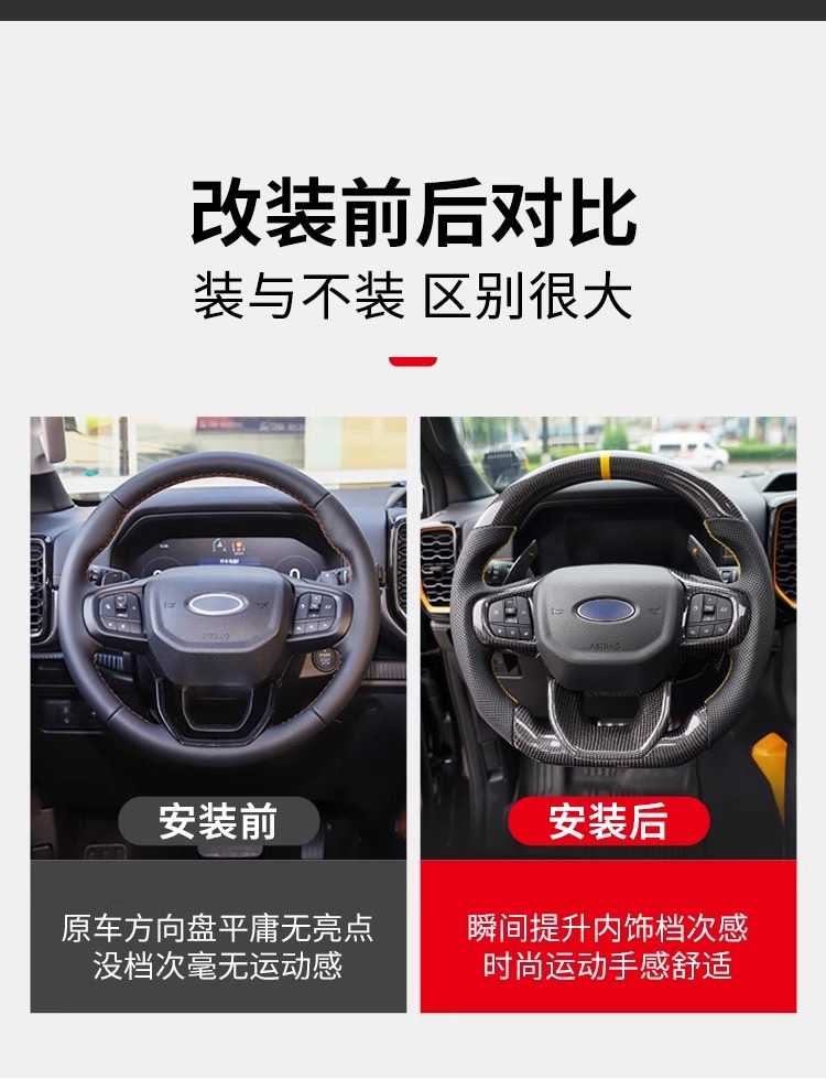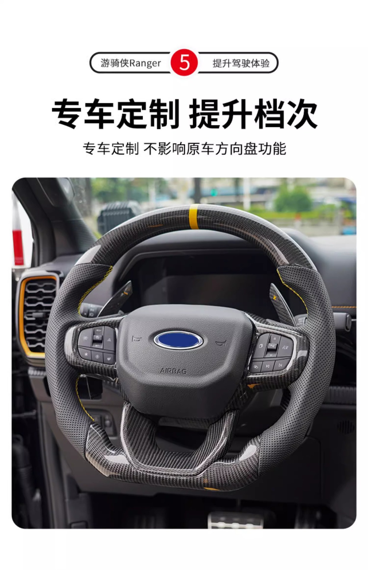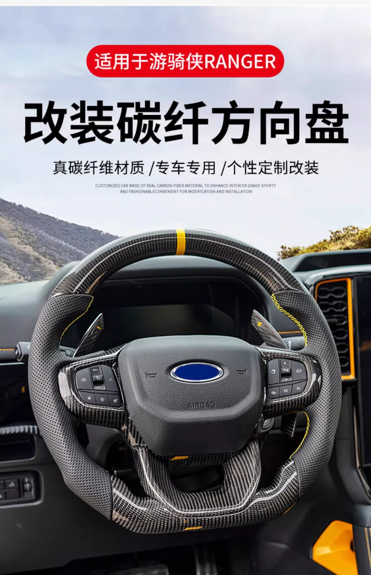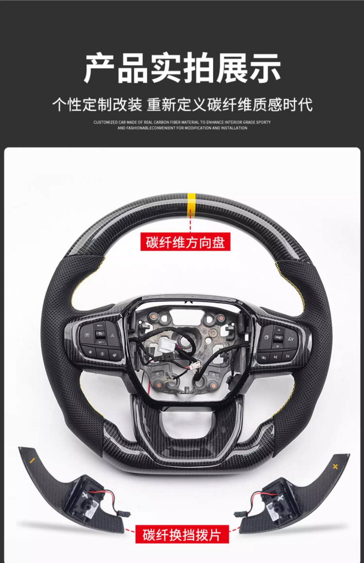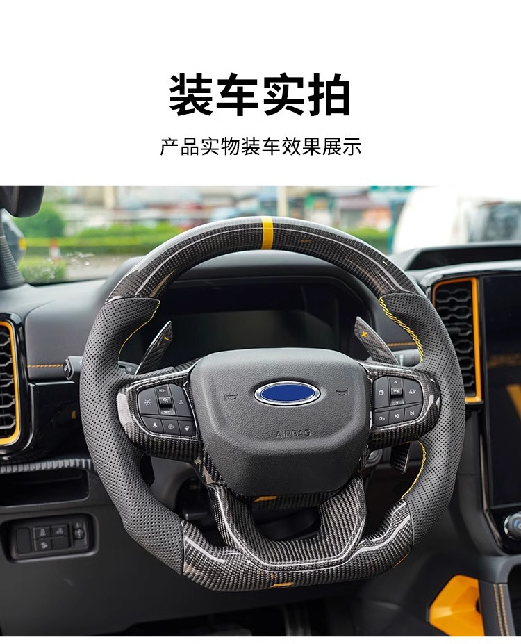Suitable for Ford Ranger RANGER modified carbon fiber leather steering wheel assembly interior personalized modification parts