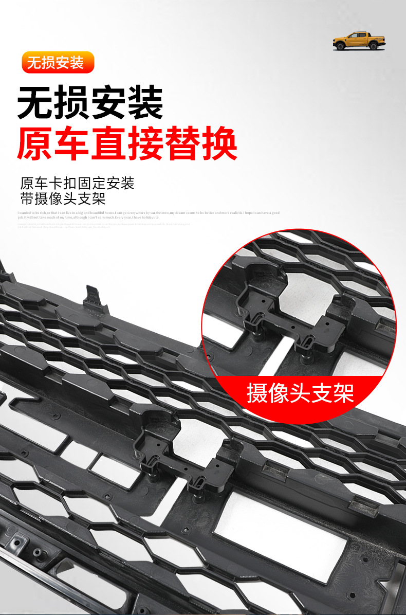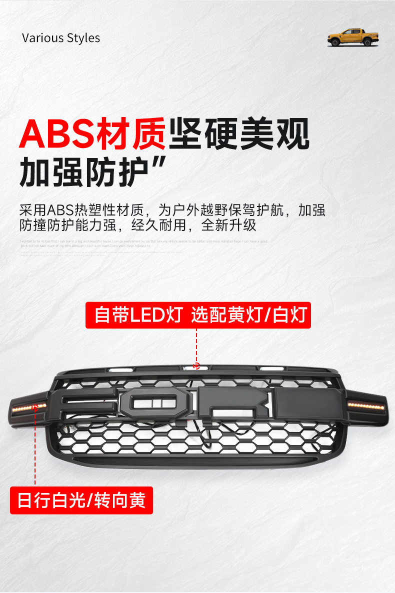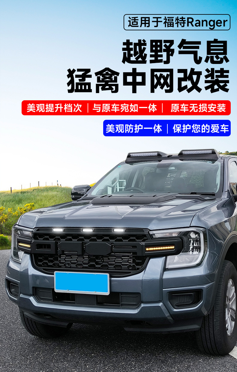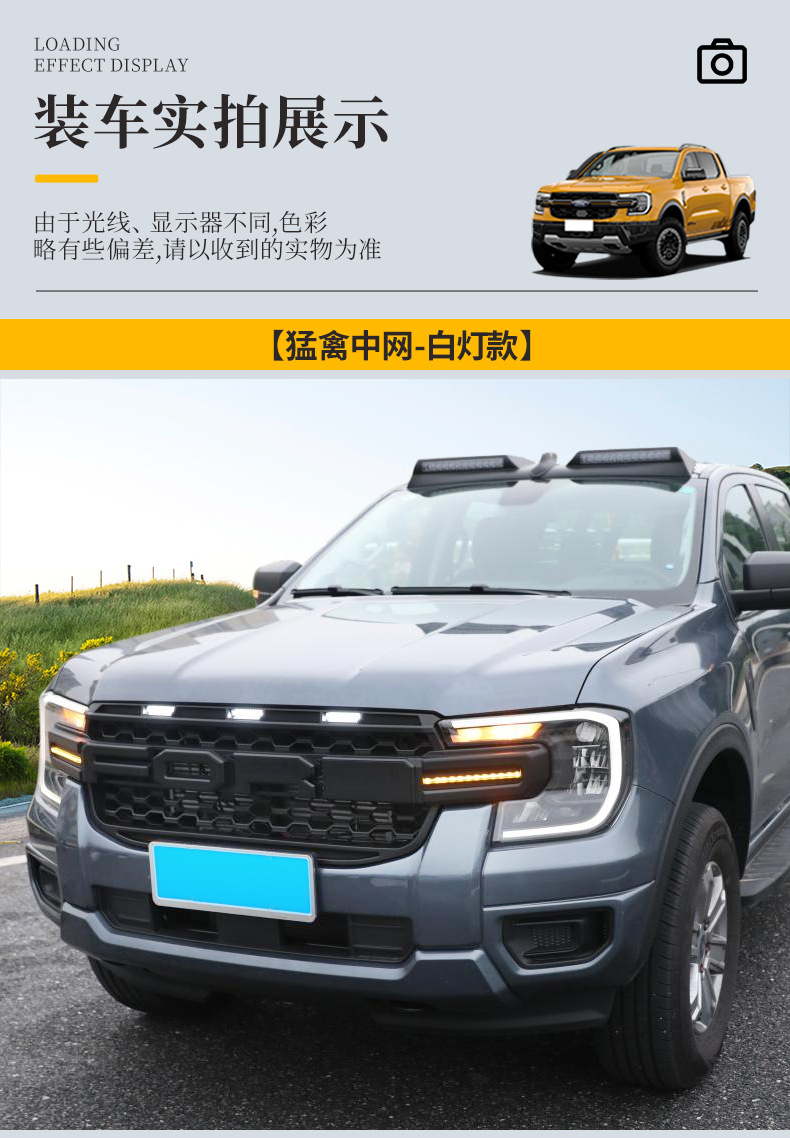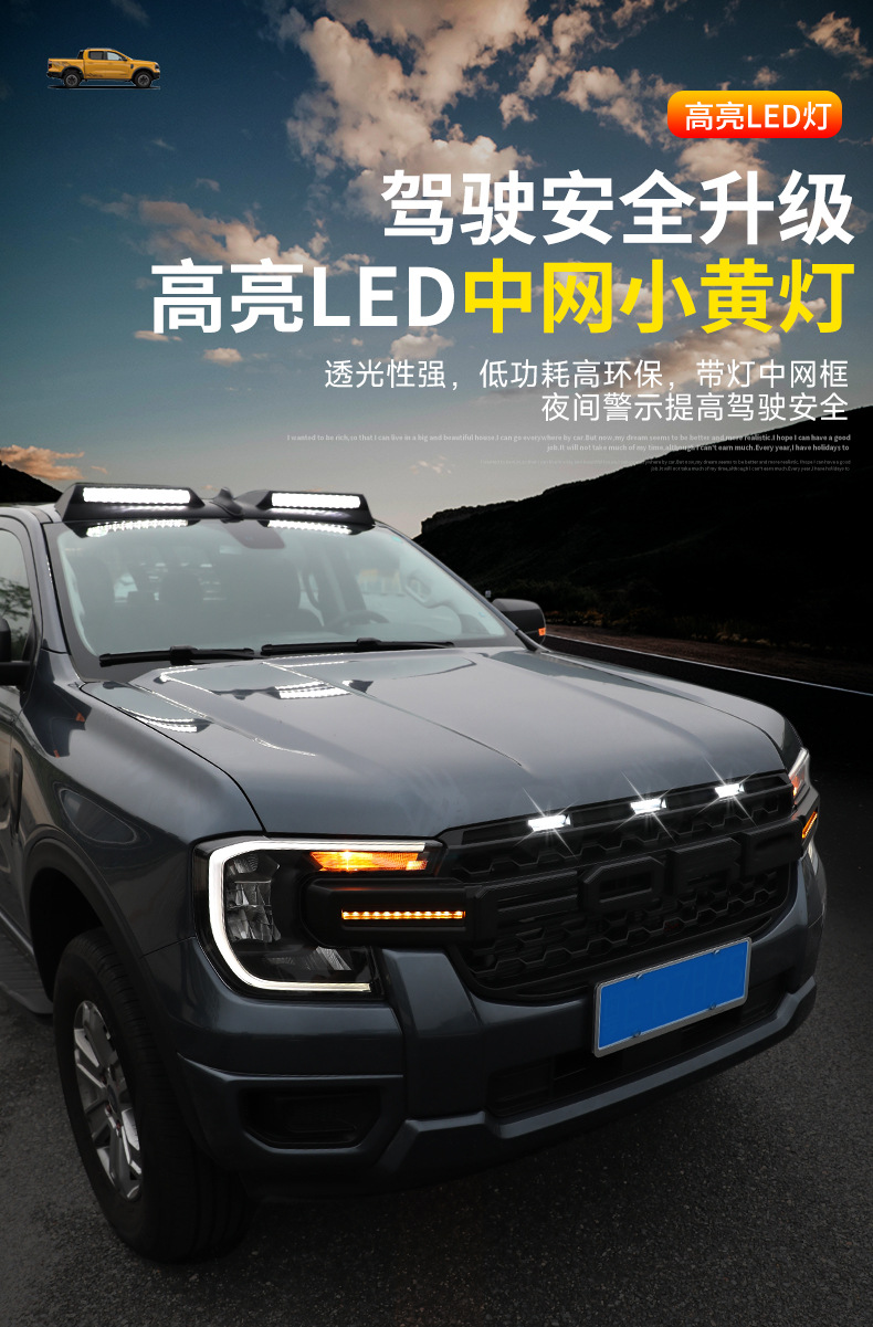 Suitable for Ford Ranger Raptor Ranger Mesh Front Face LED Small Yellow Light Mesh Grille Decoration Modification