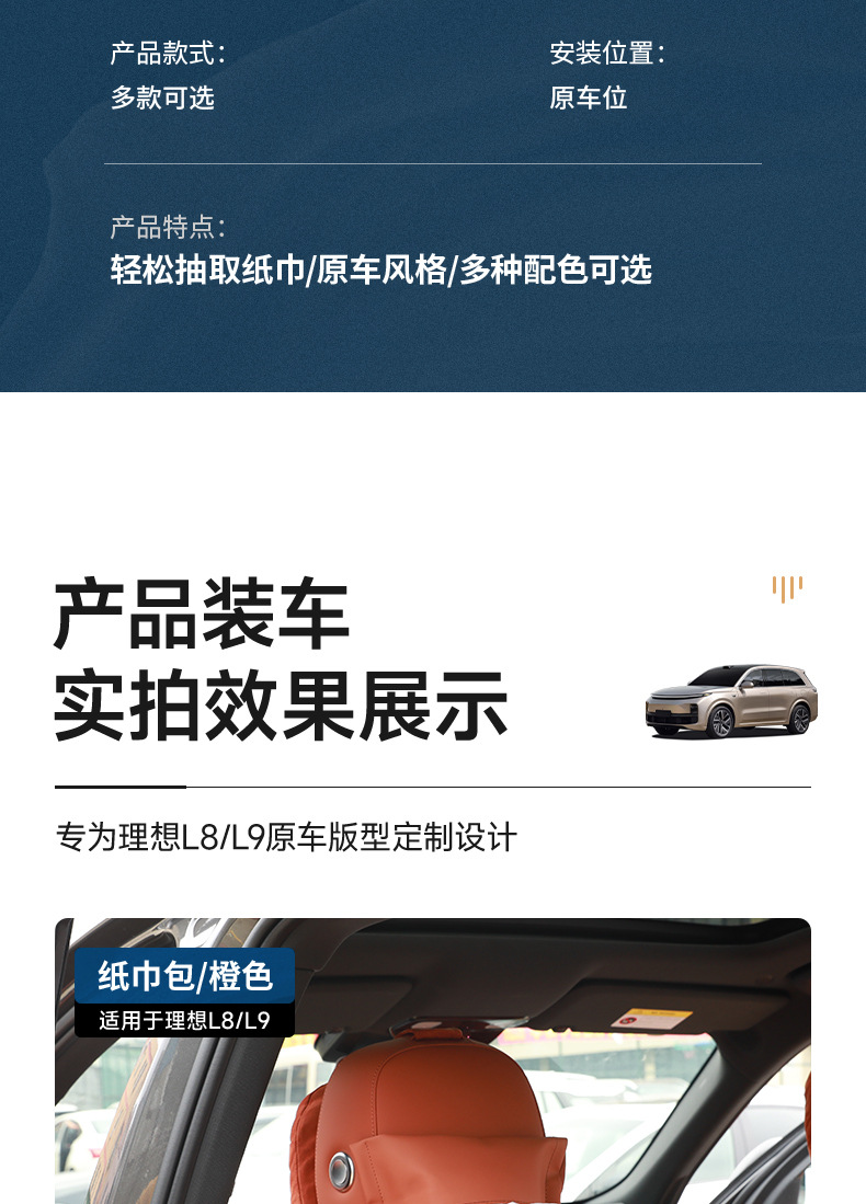 Suitable for ideal L7/L8/L9 car tissue box bag car supplies headrest strap necessary paper extraction set artifact