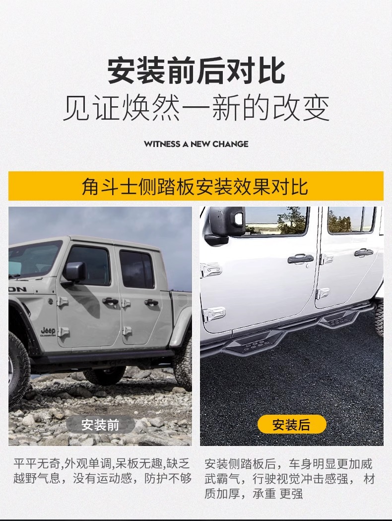 Be the first to review “Suitable for jeep Wrangler Gladiator pedal modified off-road side bar blade pedal welcome pedal accessories” Cancel reply