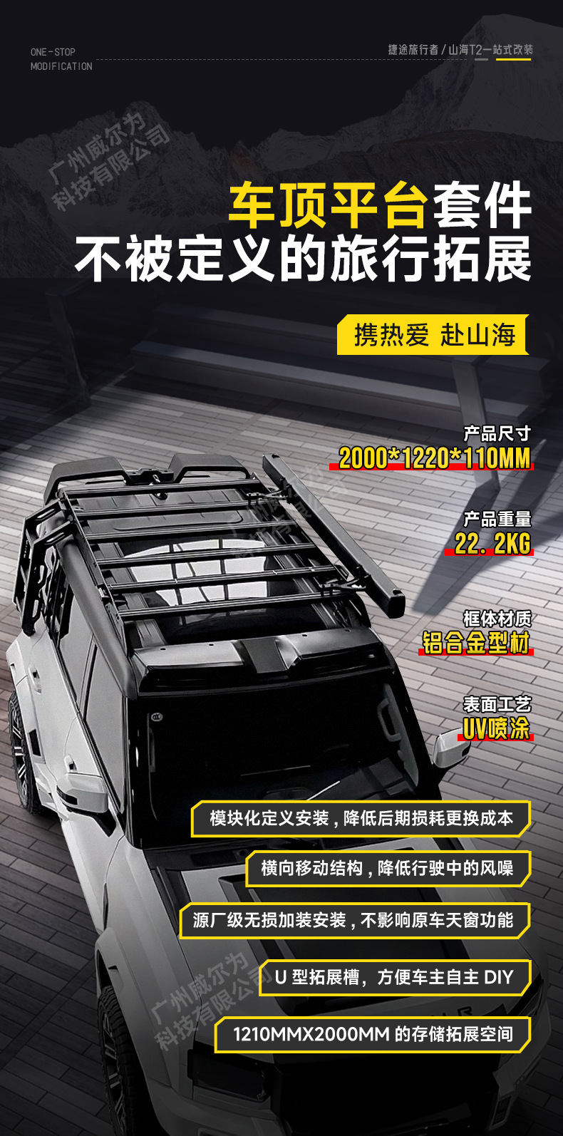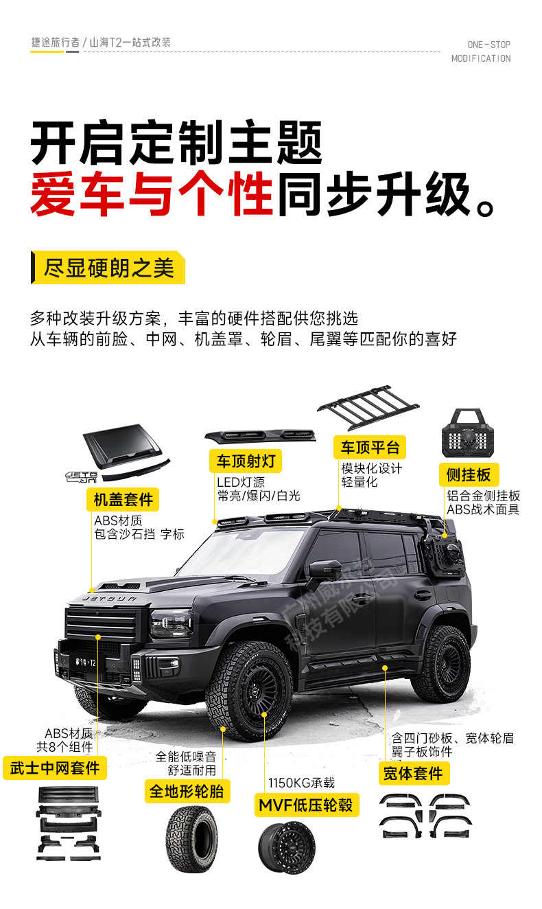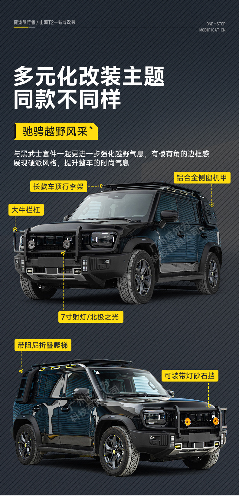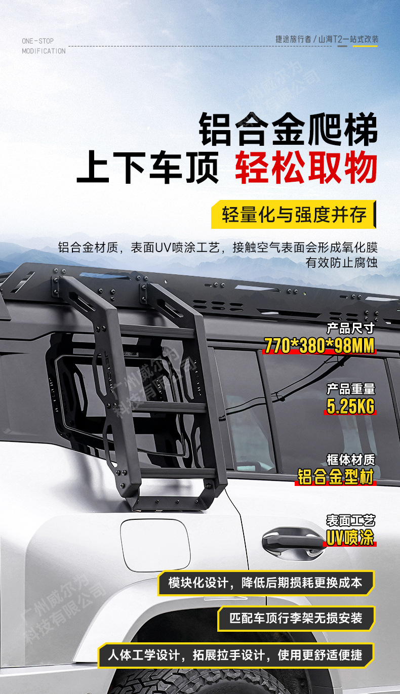 Suitable for Jet Traveler Shanhai T2 Official Change Black Samurai Star Appearance Kit Roof Rack Platform Ladder