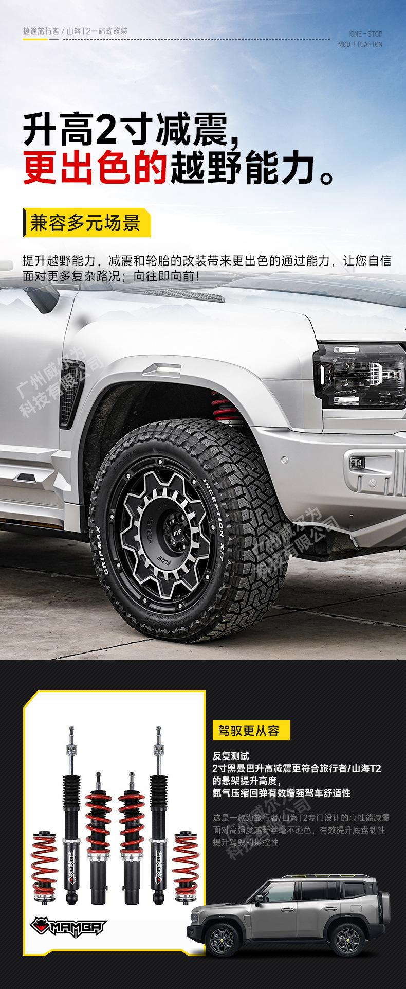 Adjustable Nitrogen Coilover Shock Absorbers Off-Road Lift Suspension Kit for Chery ICAR V23