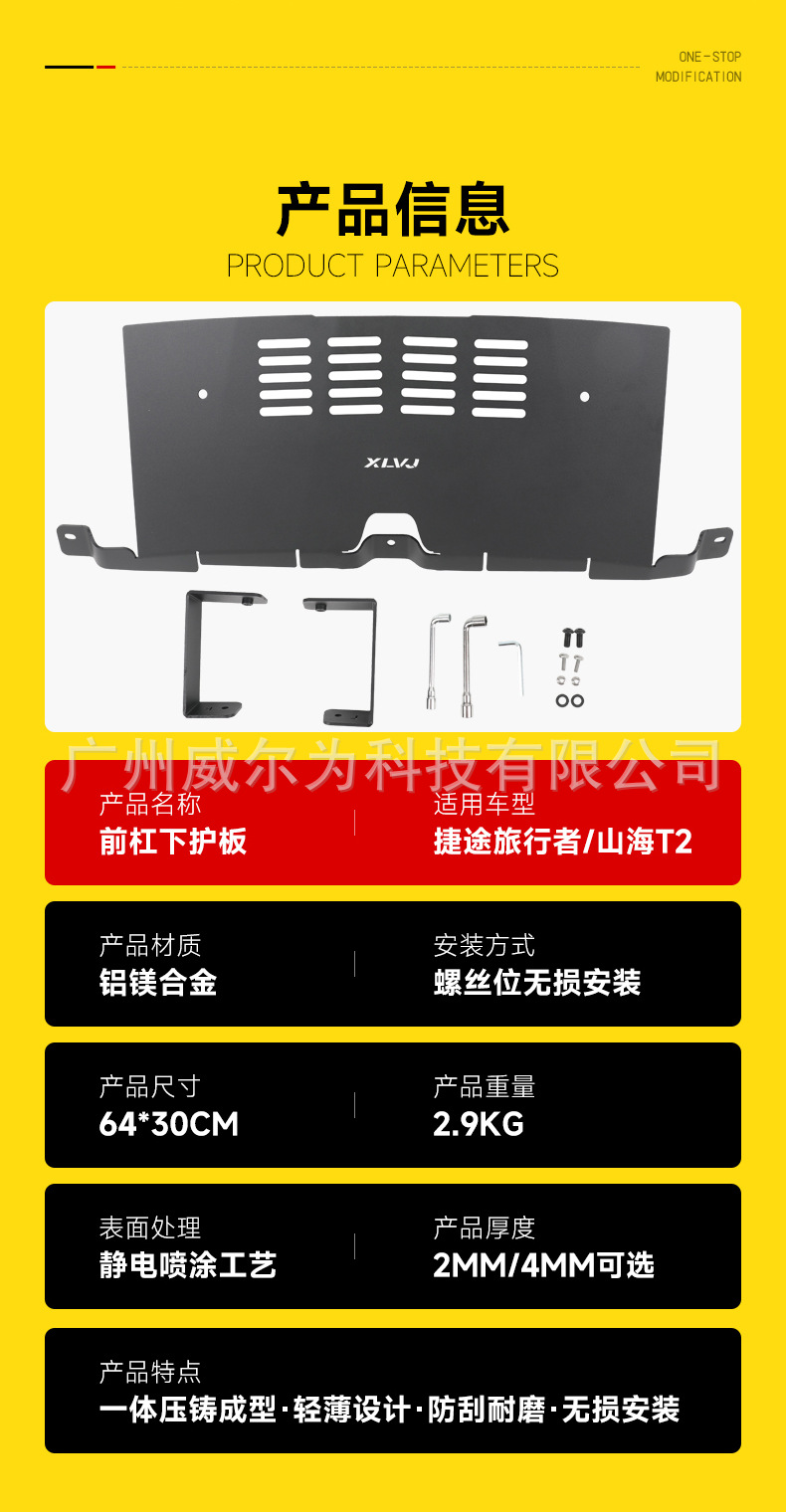 Suitable for Jet Traveler Shanhai T2 front bar lower guard plate water tank guard plate chassis sand blocking aluminum alloy modified accessories