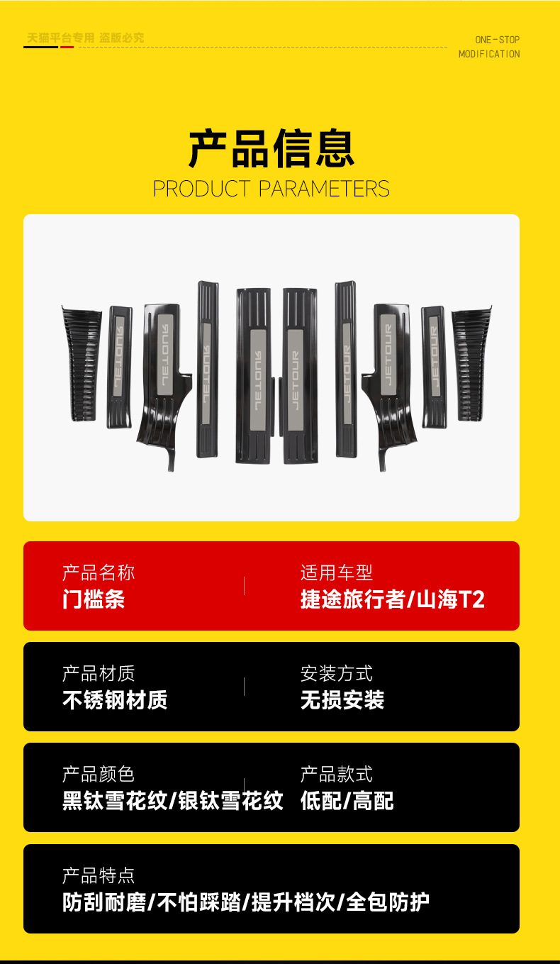 Suitable for Jet Traveler Shanhai T2 Threshold Bar Stainless Steel Interior Modification Protection Welcome Pedal Accessories