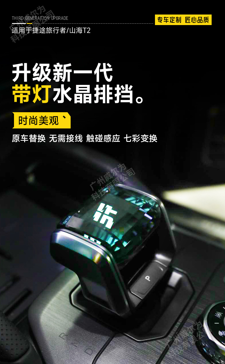 Suitable for Jet Traveler Shanhai T2 Crystal Gear Handle Modified Shift Lever Interior Accessories with Light Gear Head