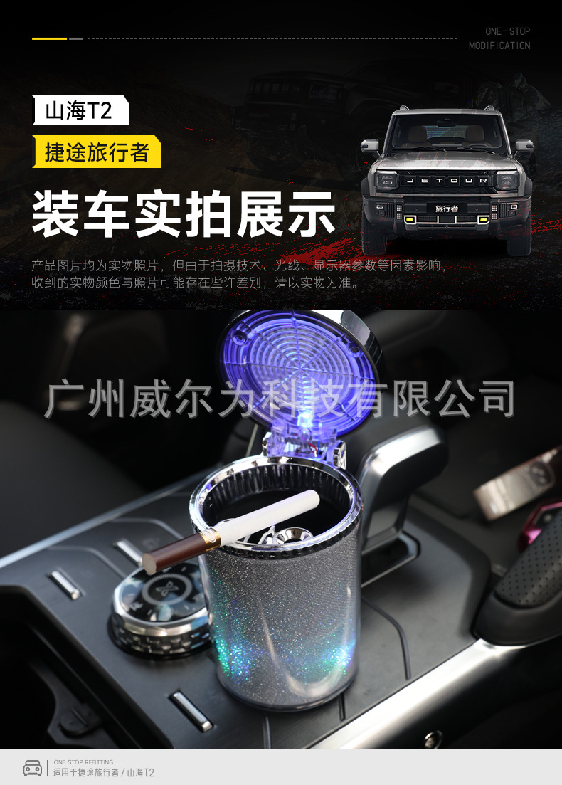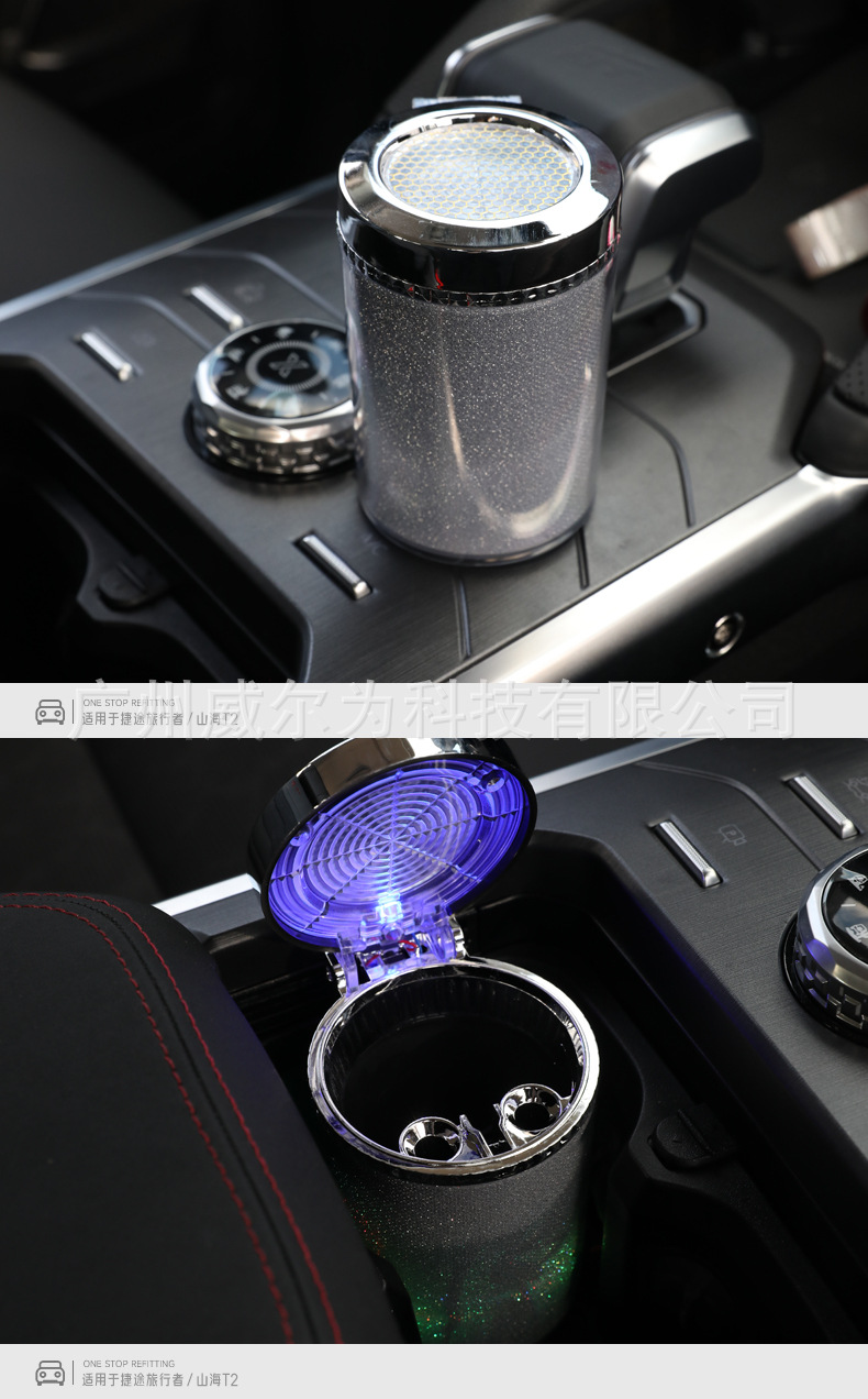 Suitable for Jietu Traveler Shanhai T2 Car Ashtray with Cover Special Modified Multifunctional Metal Liner with Light
