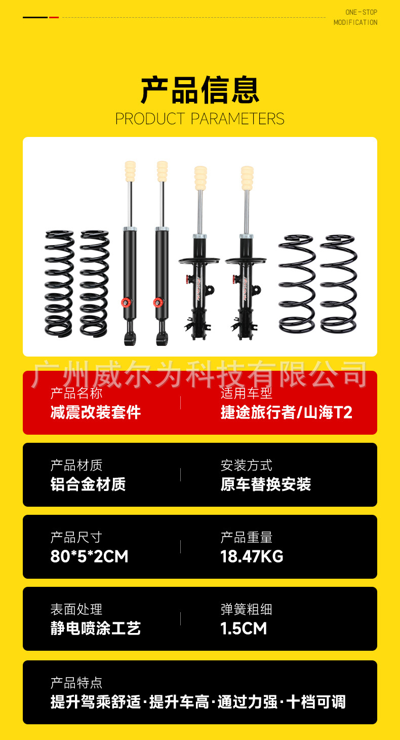 Suitable for Jietu Traveler Shanhai T2 Elevated 2-inch Shock Absorber Shock Absorber Spring Header Chassis Off-road Modification