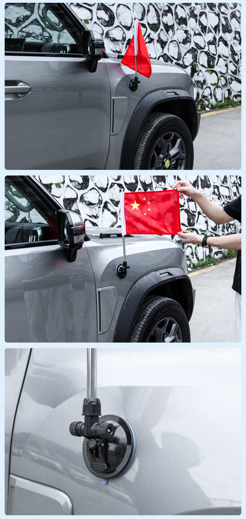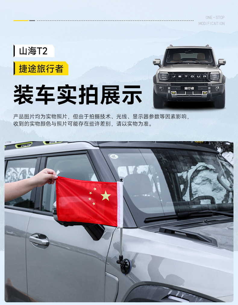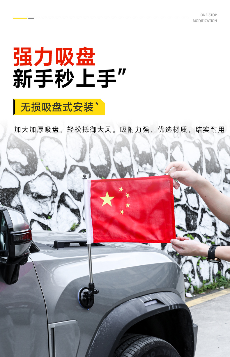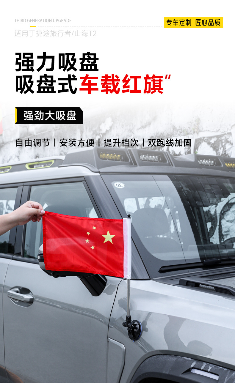 Suitable for Jietu Traveler Suction Cup Magnetic Car-Mounted Five-Star Red Flag National Day Decorative Flag Punch-Free Decorative Accessories
