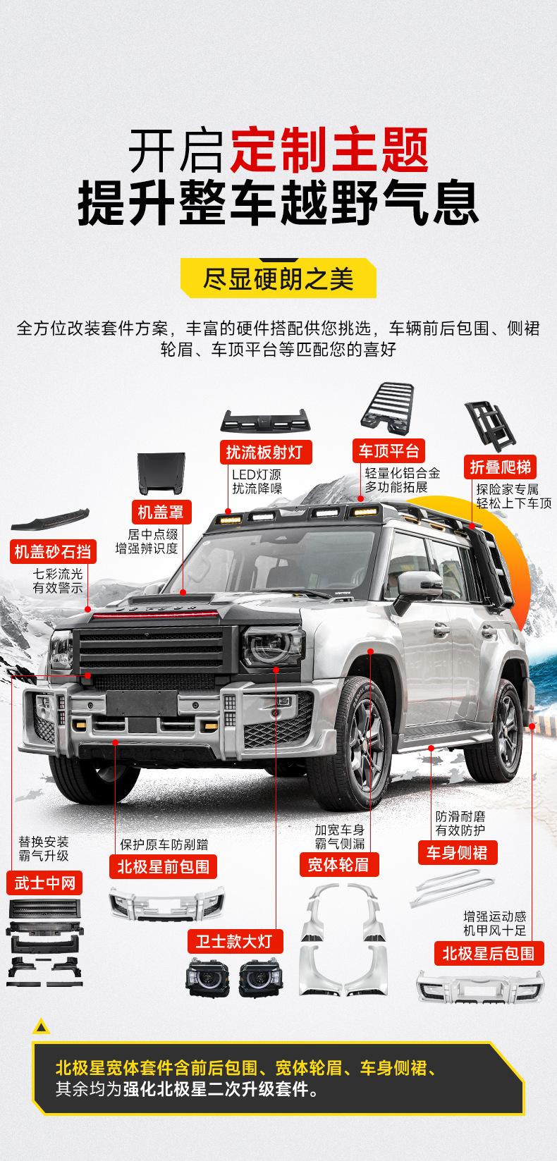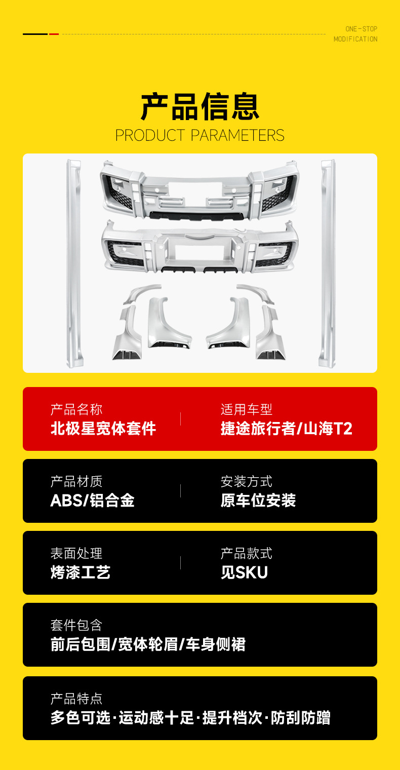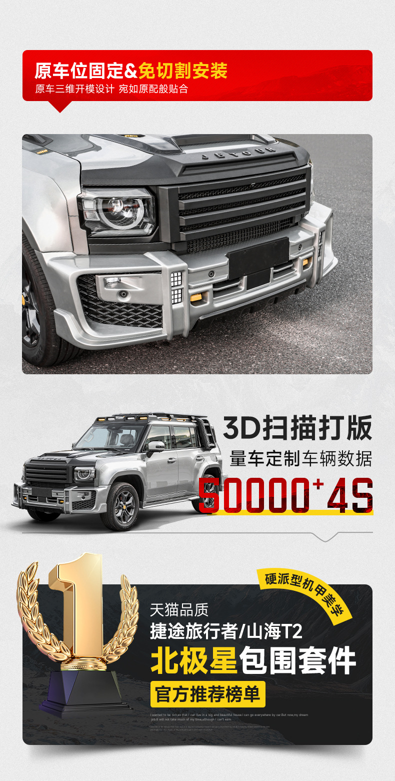 Suitable for Jietu Traveler/T2 Polaris Wide Body Large Surround Kit Front and Rear Wheel Eyebrows Grille Hood Modification
