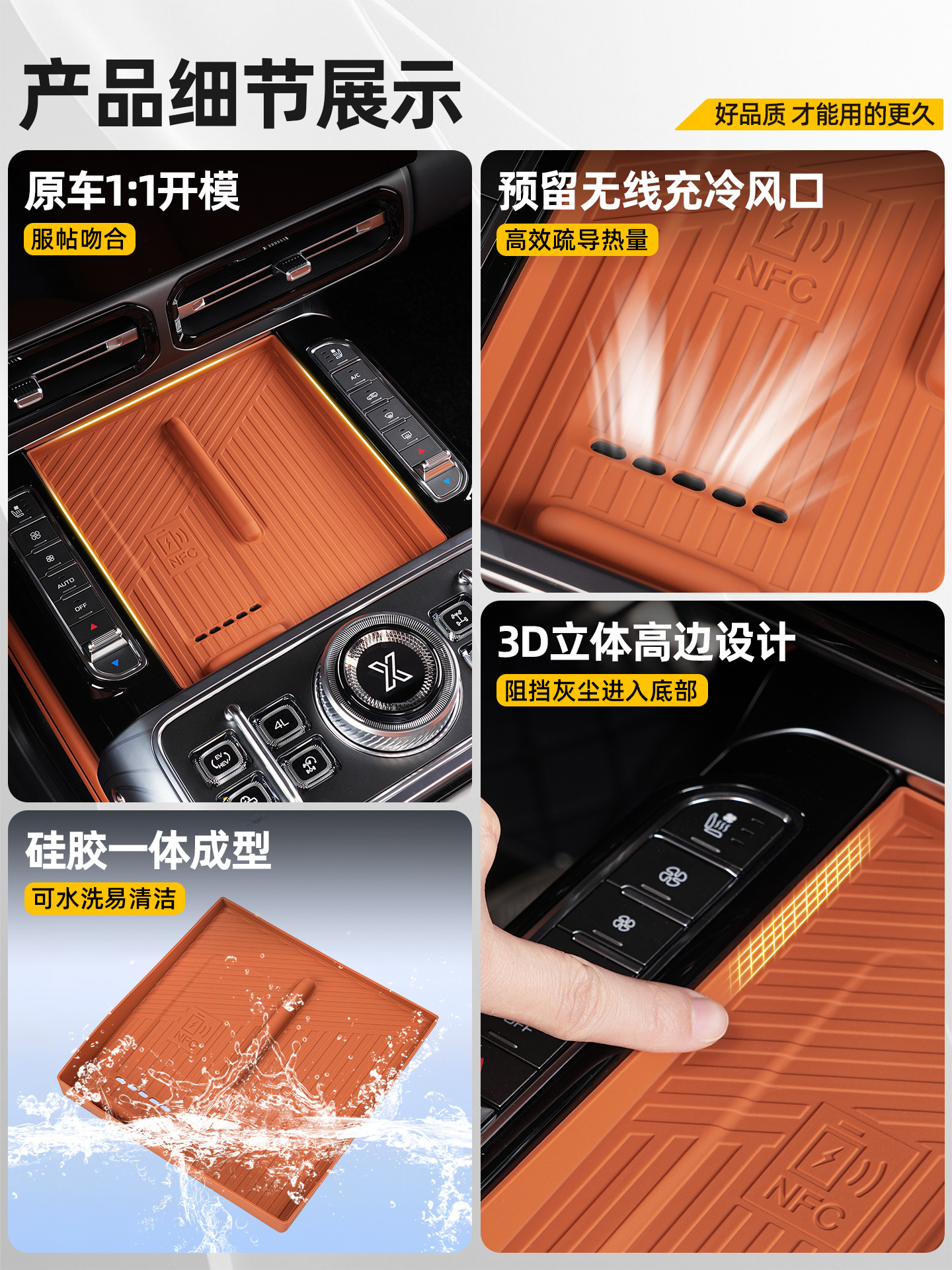 Suitable for Jietu Zhongheng G700 Wireless Charging Silicone Pad Central Control Anti-Slip Storage Box Pad Interior Modification Decoration Supplies