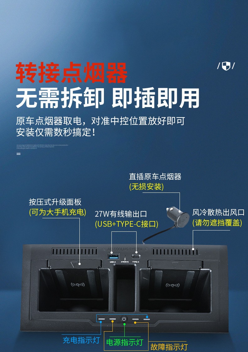 Suitable for Land Rover Defender Wireless Charger Dual-Position Mobile Phone USB Car Charger Central Control Storage Box 11090 Modification