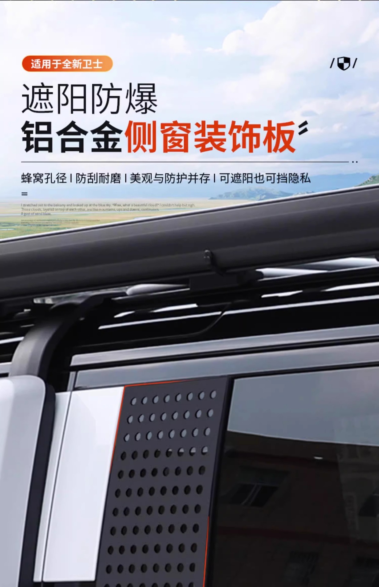 Suitable for Land Rover New Guard rear window decorative plate side window protective plate appearance decoration modification 110 side window net