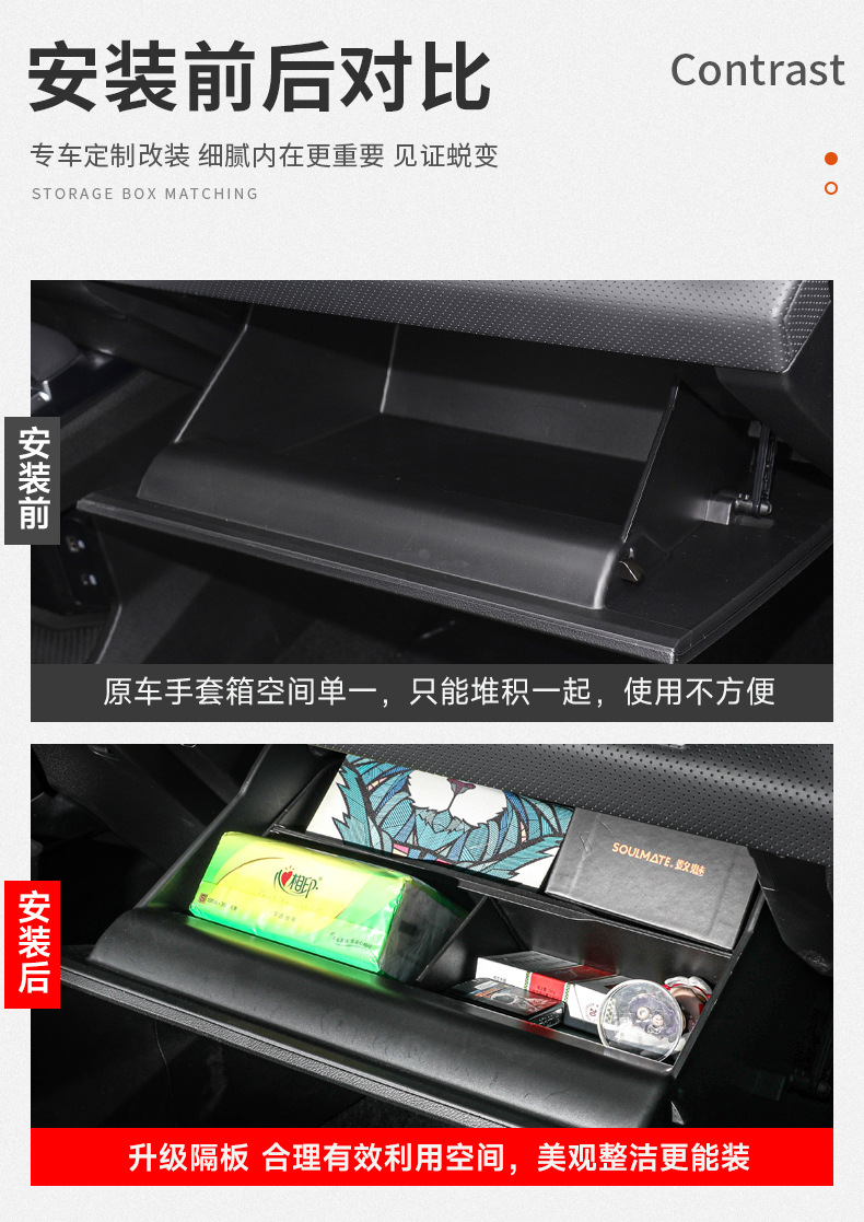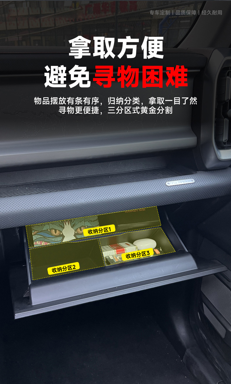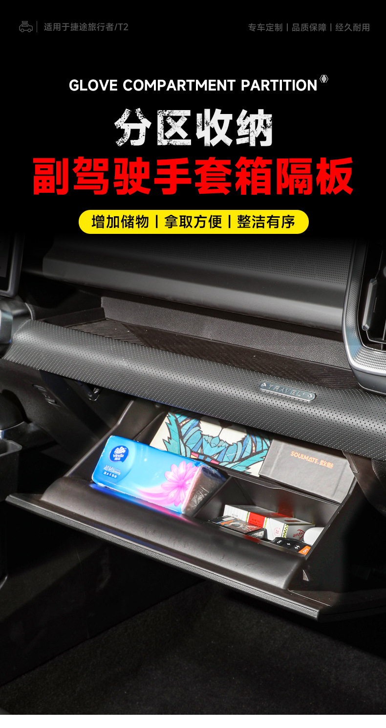 Suitable for modification of interior decoration of Jie Tu Traveler/T2 co-pilot glove box partition storage partition storage box