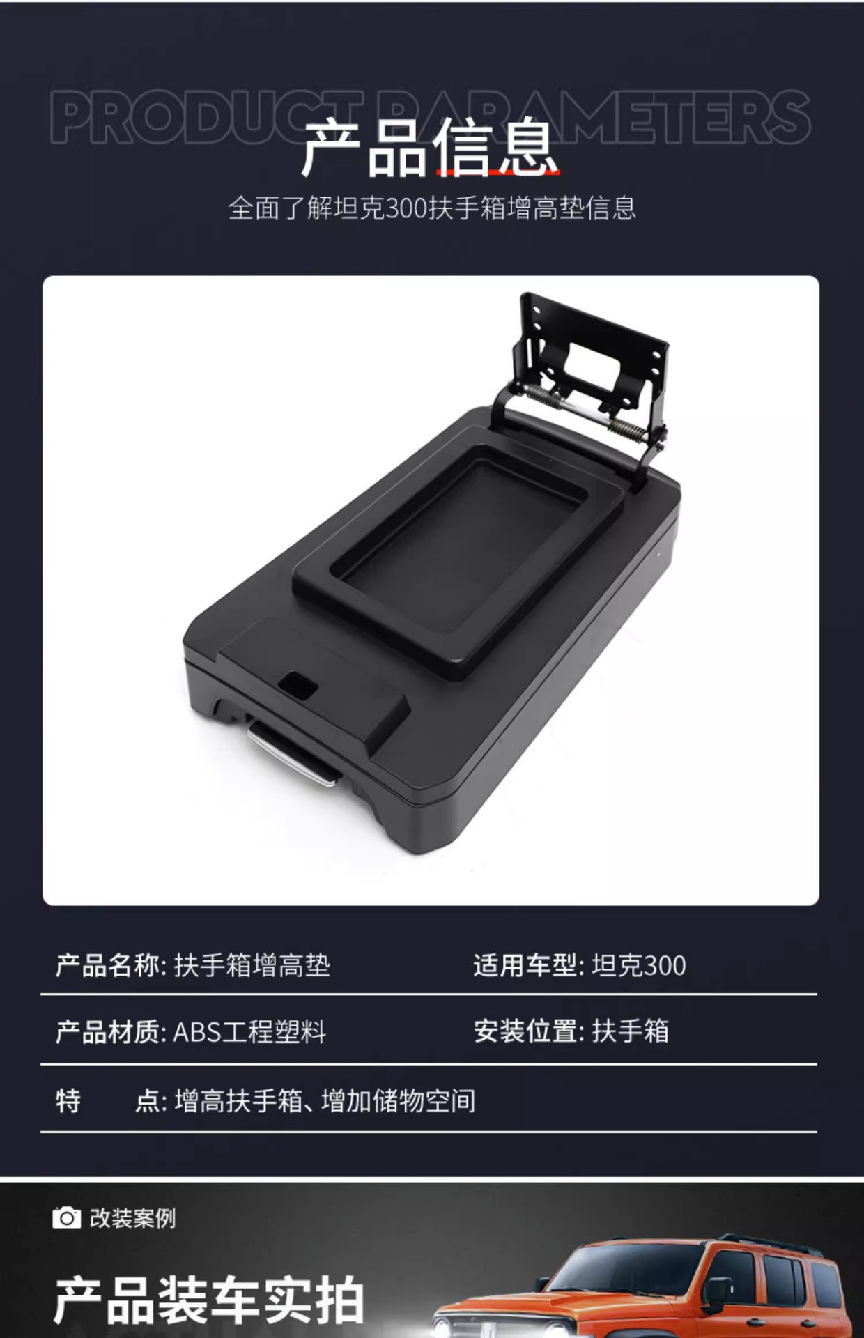 Suitable for tank 300 armrest box heightening assembly dedicated central push-pull hand storage box heightening interior modification
