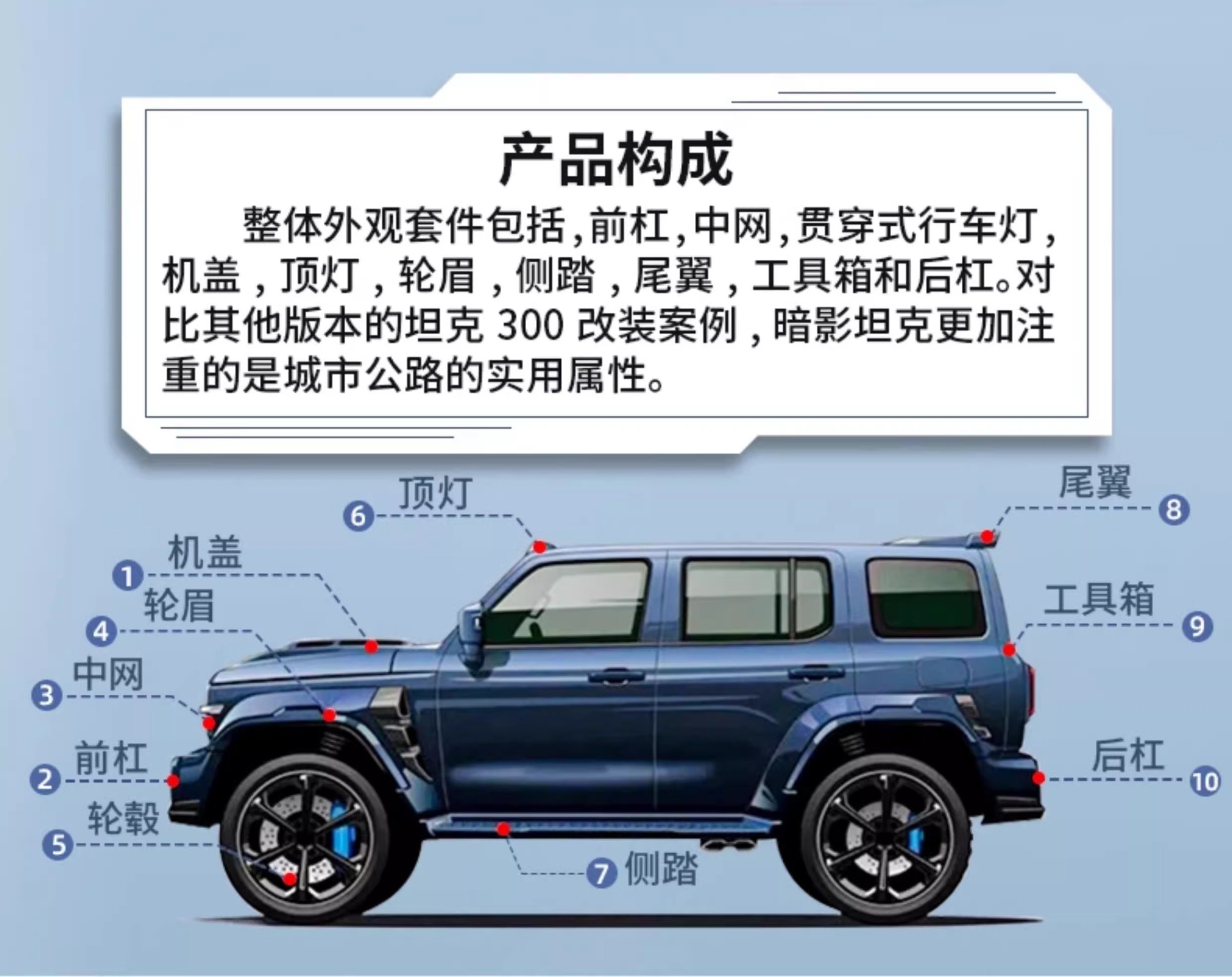 Suitable for Tank 300 Modification Shadow Surround Front Bumper Hood Rear Bumper Rear Wing Exhaust Wheel Hub Shadow Tank Kit