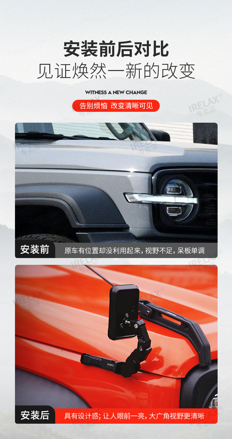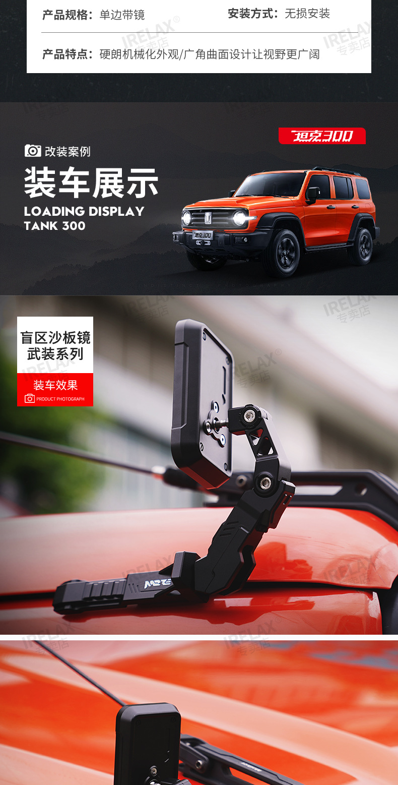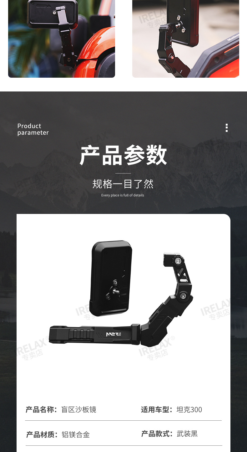 Suitable for tank 300 sandboard mirror rearview mirror Machine cover modification parts reversing blind spot mirror dead angle ground wide-angle mirror
