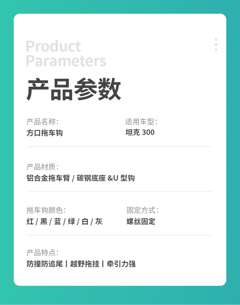 Be the first to review “Suitable for Tank 300 Square Mouth Tow Hook Modified Roof Tire Rogue Hook Tow Hook U-Shaped Tow Arm Anti-Collision Accessories” Cancel reply