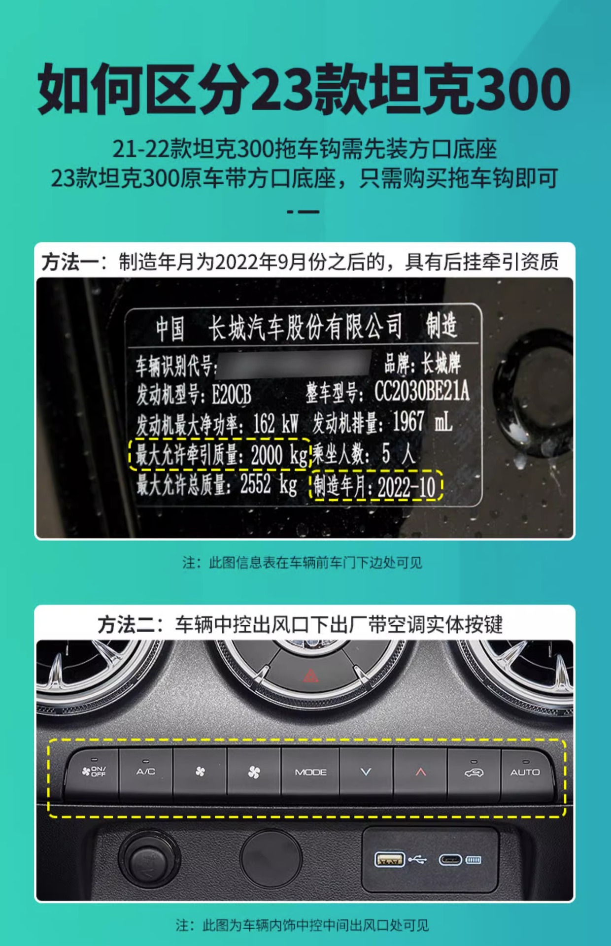 Suitable for Tank 300 Square Mouth Tow Hook Modified Roof Tire Rogue Hook Tow Hook U-Shaped Tow Arm Anti-Collision Accessories