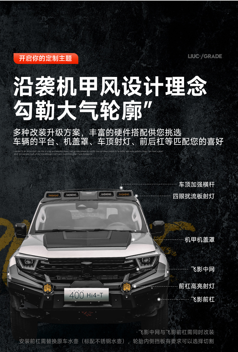 Suitable for tank 400hi4 flying shadow kit surrounding front and rear bars front and middle net cover tail wing appearance modification