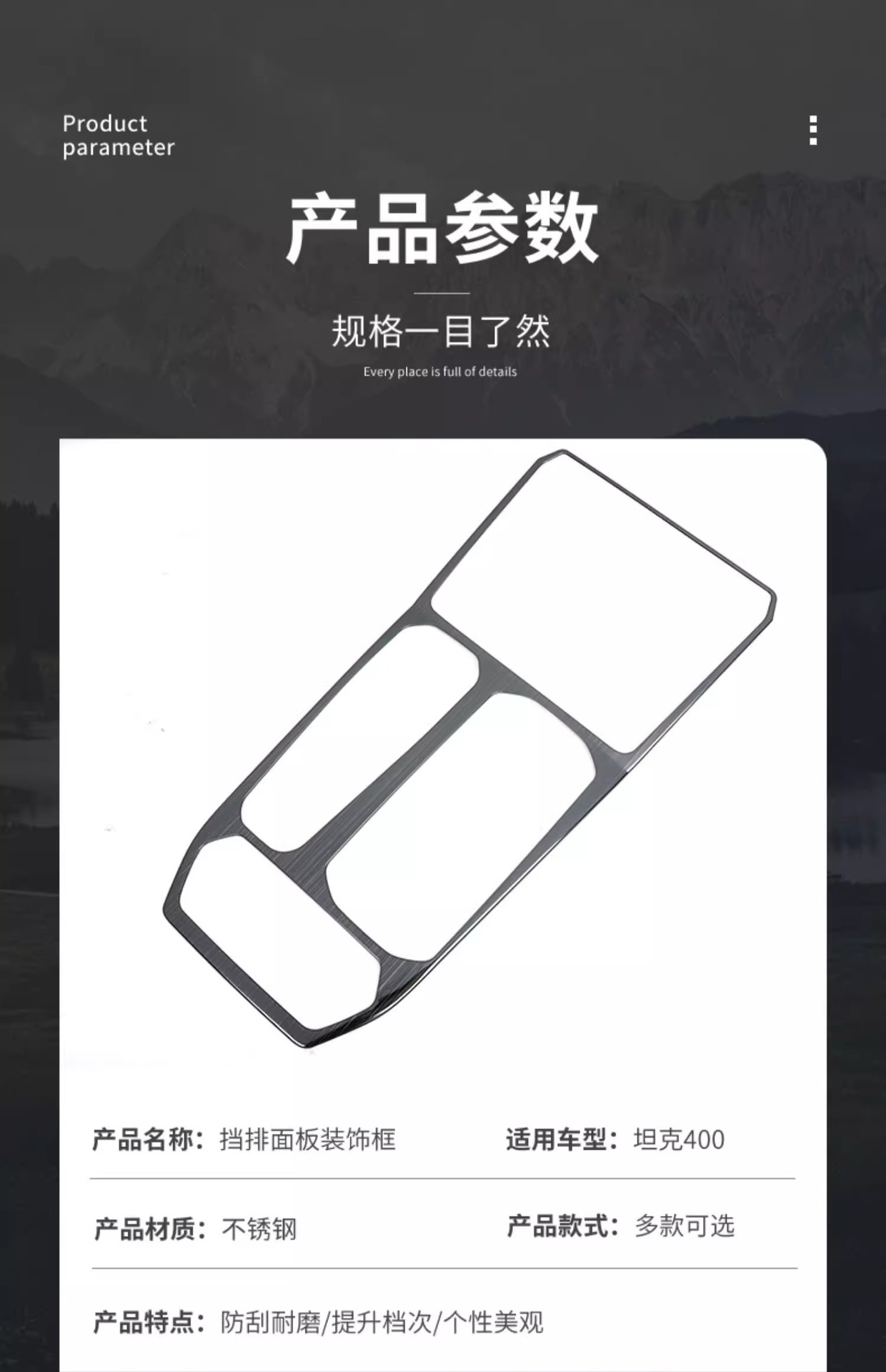 Be the first to review “Suitable for tank 400hi4t central control gear frame interior decoration modification special stainless steel panel decorative frame” Cancel reply