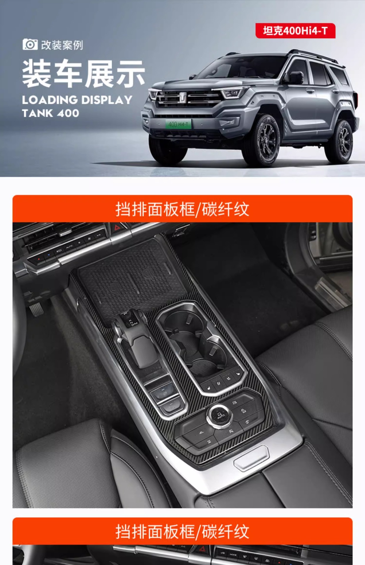 Suitable for tank 400hi4t central control gear frame interior decoration modification special stainless steel panel decorative frame