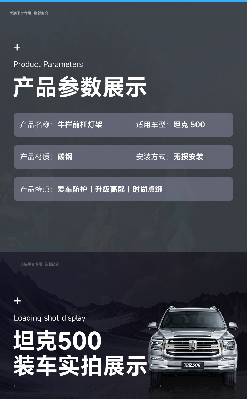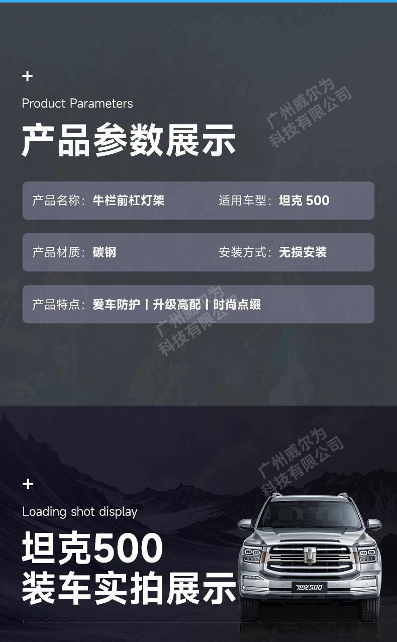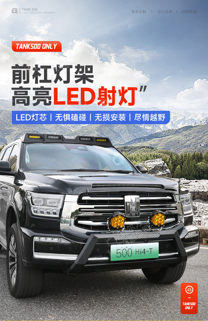 Suitable for tank 500 front bumper lamp frame modification cowshed bar spotlight bracket fender off-road special accessories