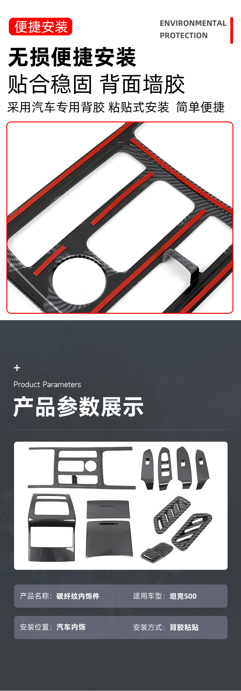 Suitable for tank 500Hi4-t central control panel frame pasting air outlet water cup carbon fiber pattern interior decoration modification accessories