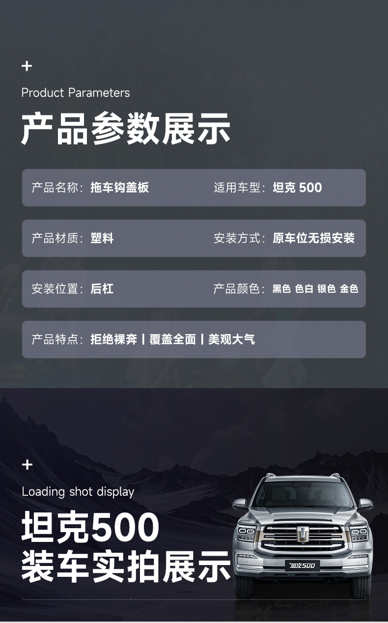 Suitable for tank 500Hi4-T trailer hook cover plate off-road plug-in hybrid outdoor bag tiger head hook decorative cover plate accessories