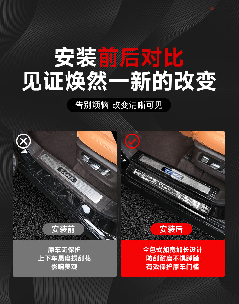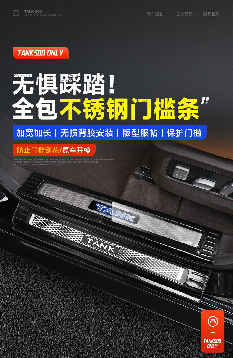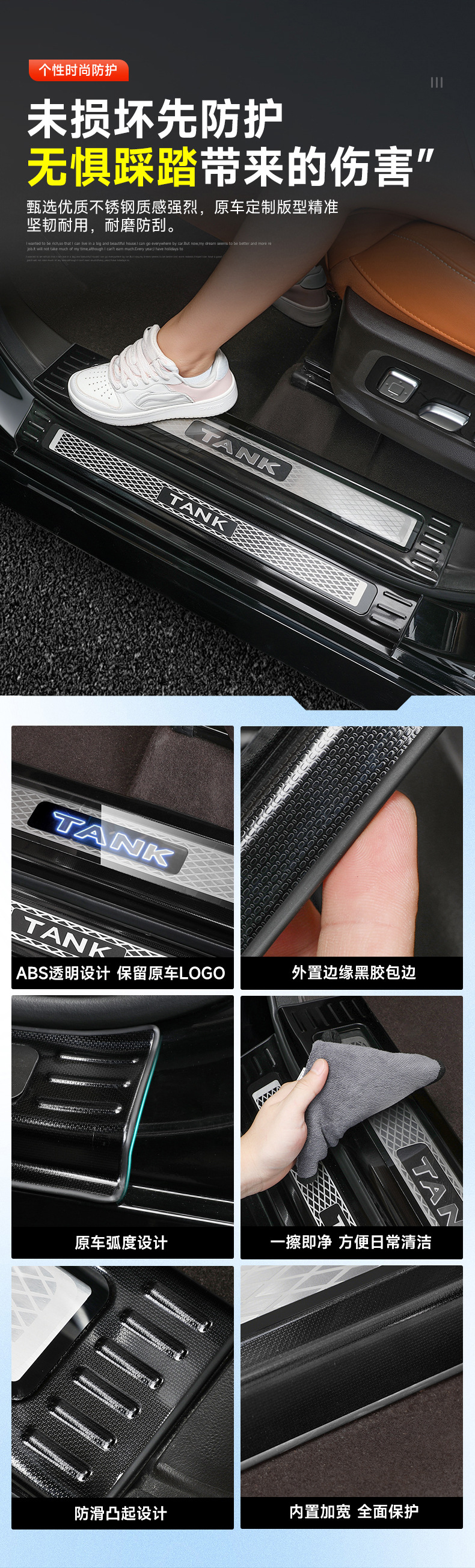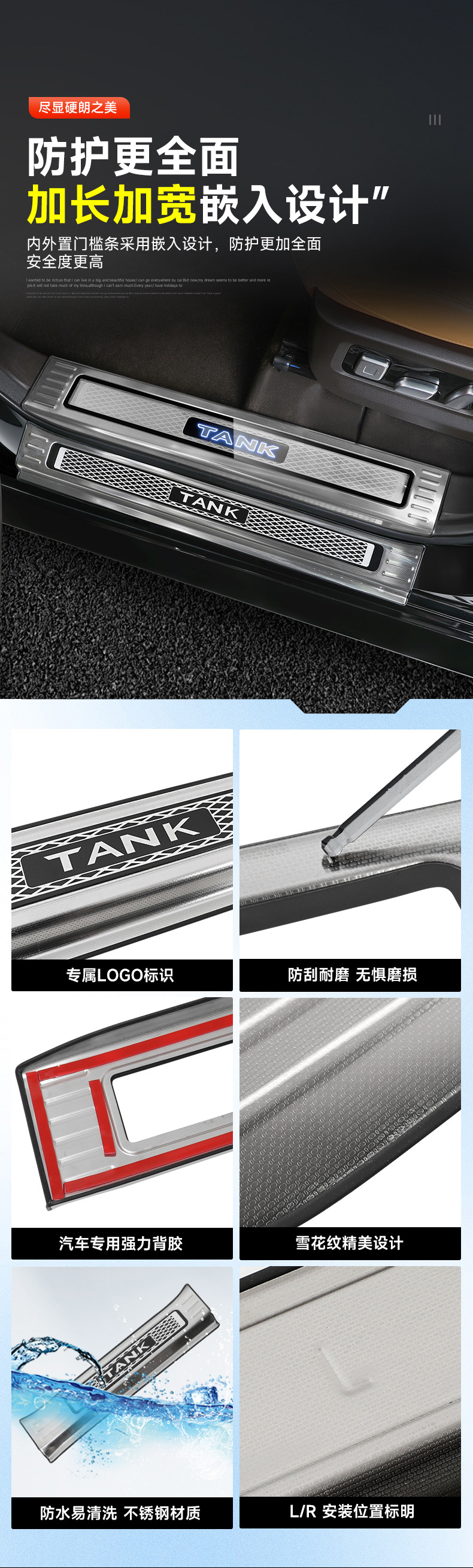 Suitable for Tank 500Hi4Z/T Door Sill Strip Rear Guard Modified Tailgate Welcome Pedal Stainless Steel Anti-Scratch Accessories