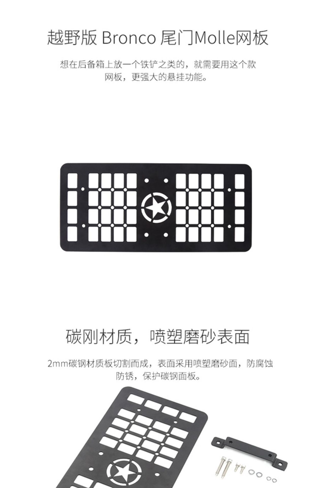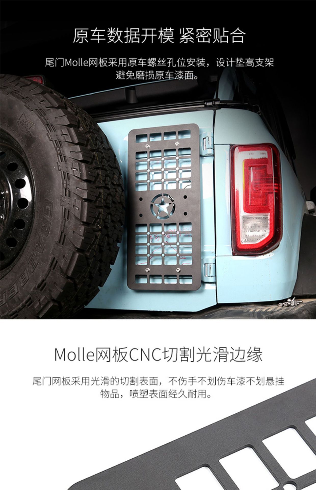 - Expansion Storage: Provides an integrated modular surface to attach tactical gear, tools, and off-road accessories to the tailgate.