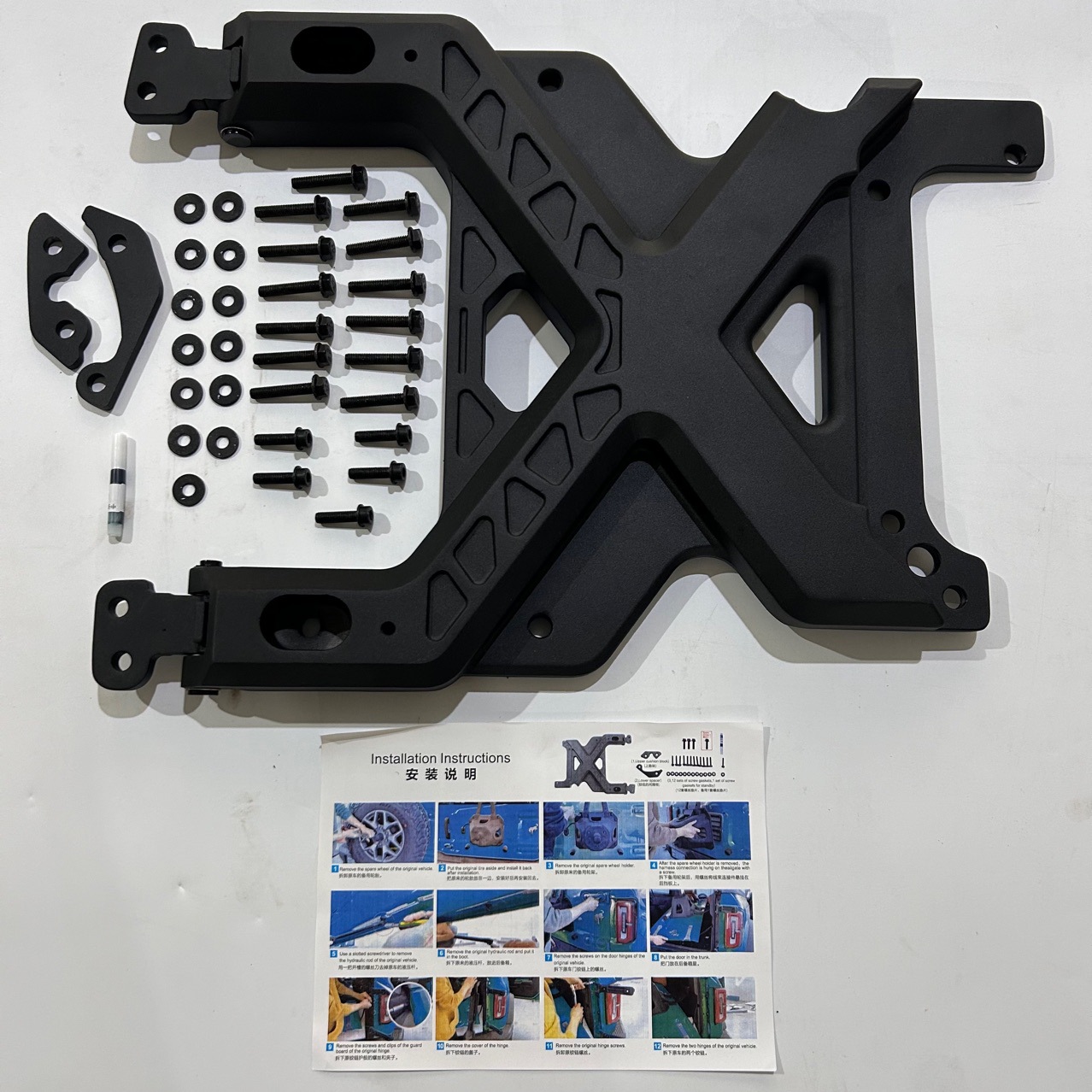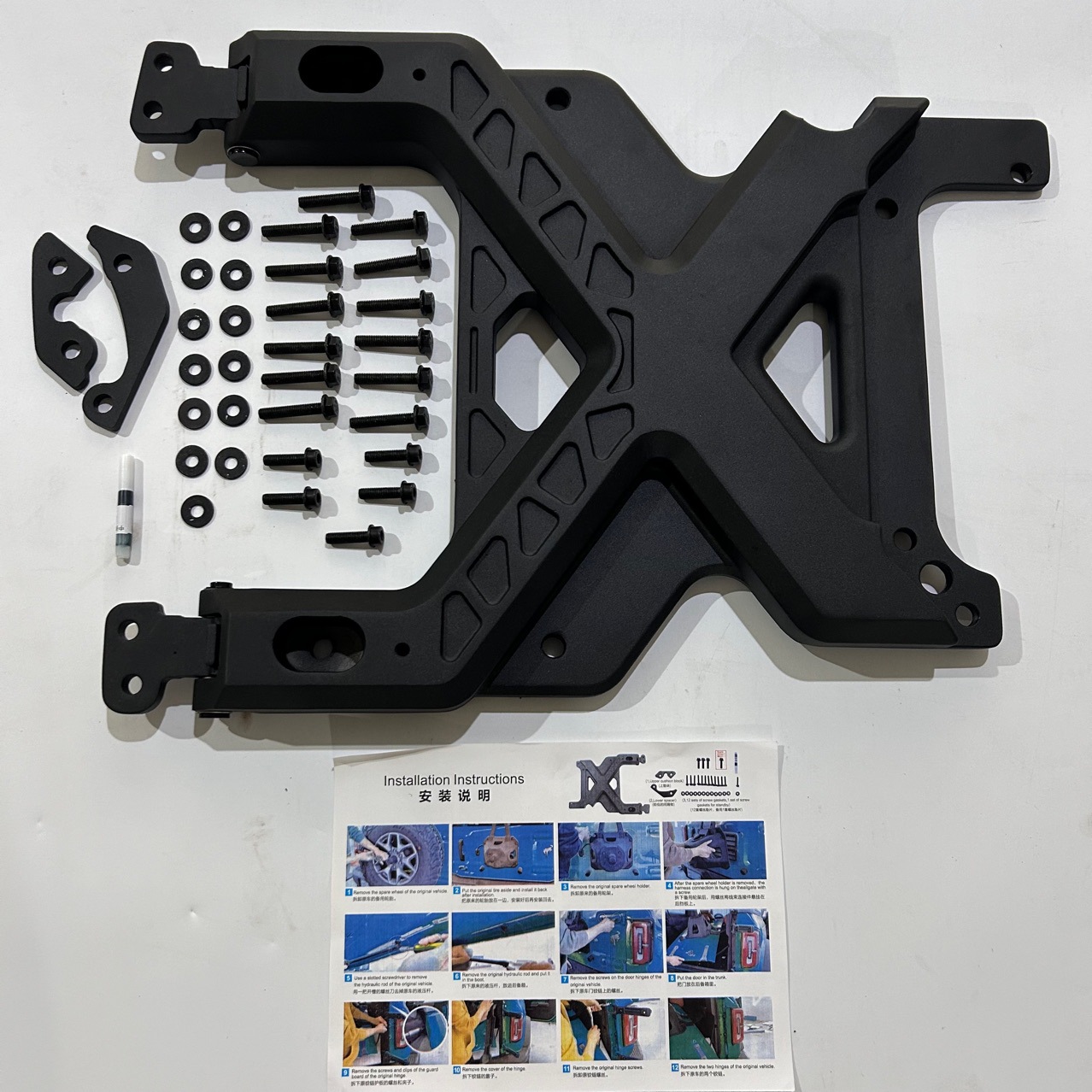 - Heavy-Duty Support: Specifically engineered for 2021-2024 Ford Bronco models to reinforce the factory tailgate hinges, allowing for the stable mounting of oversized spare tires.