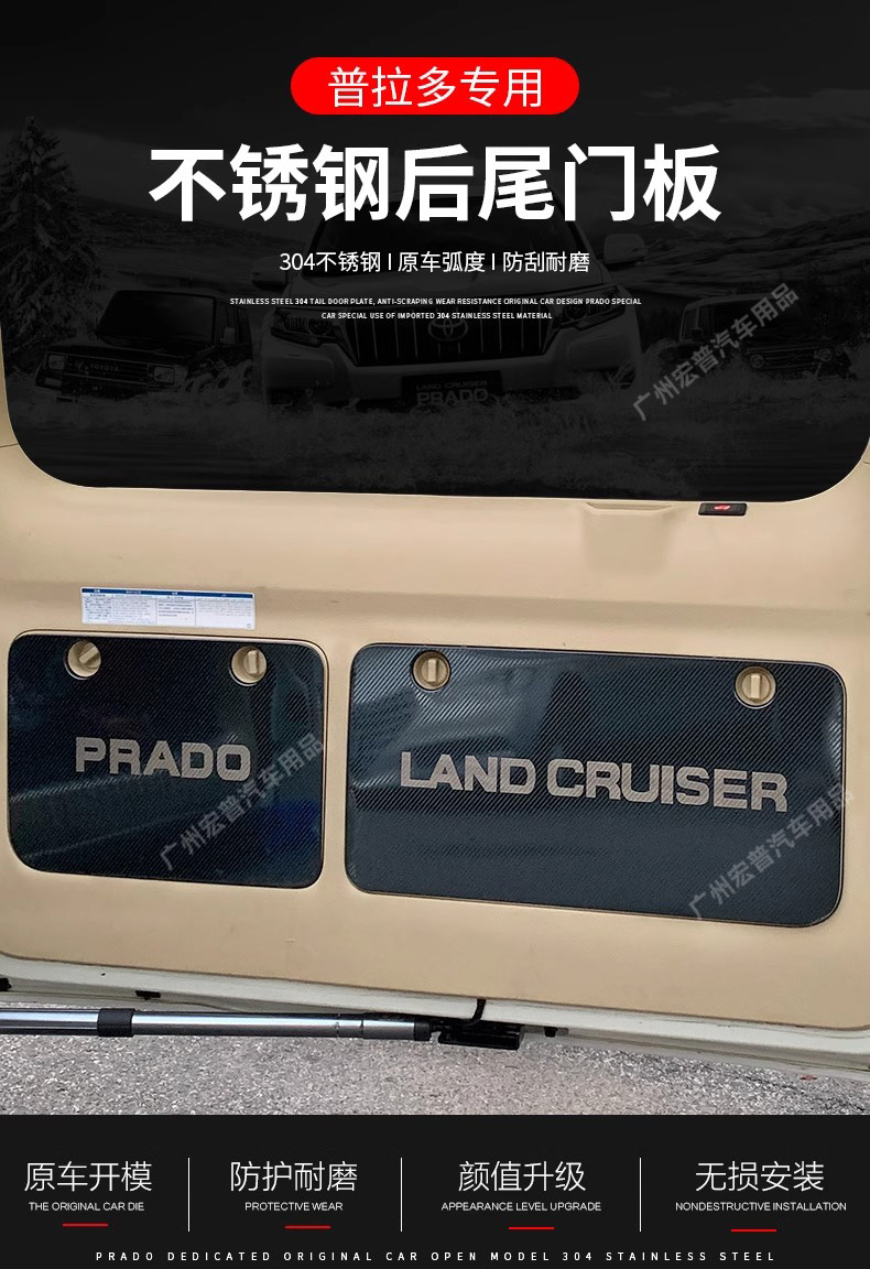 Tags: inner bumper guard, Prado interior accessories, rear door sill protector, stainless steel trunk trim, tailgate guard plate, tailgate threshold cover