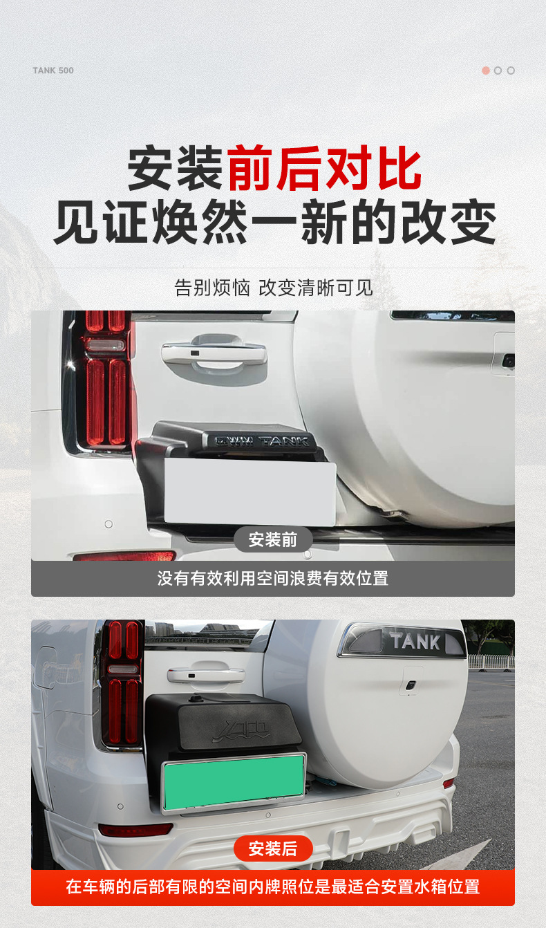 Tailgate License Plate Mount Water Storage Tank for Tank 500 Hi4-T Off-Road Camping Accessories