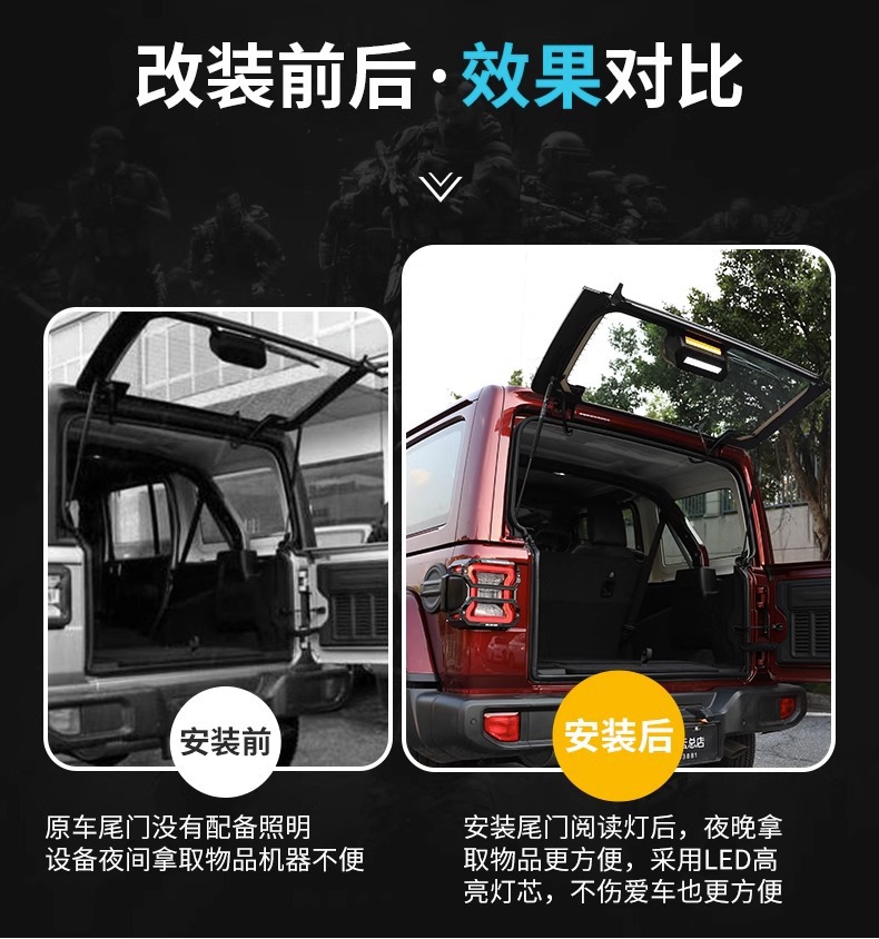 Tailgate Reading and Warning Light for Wrangler 2007-2023, Rear Trunk Glass Mounted Outdoor Camping Lamp