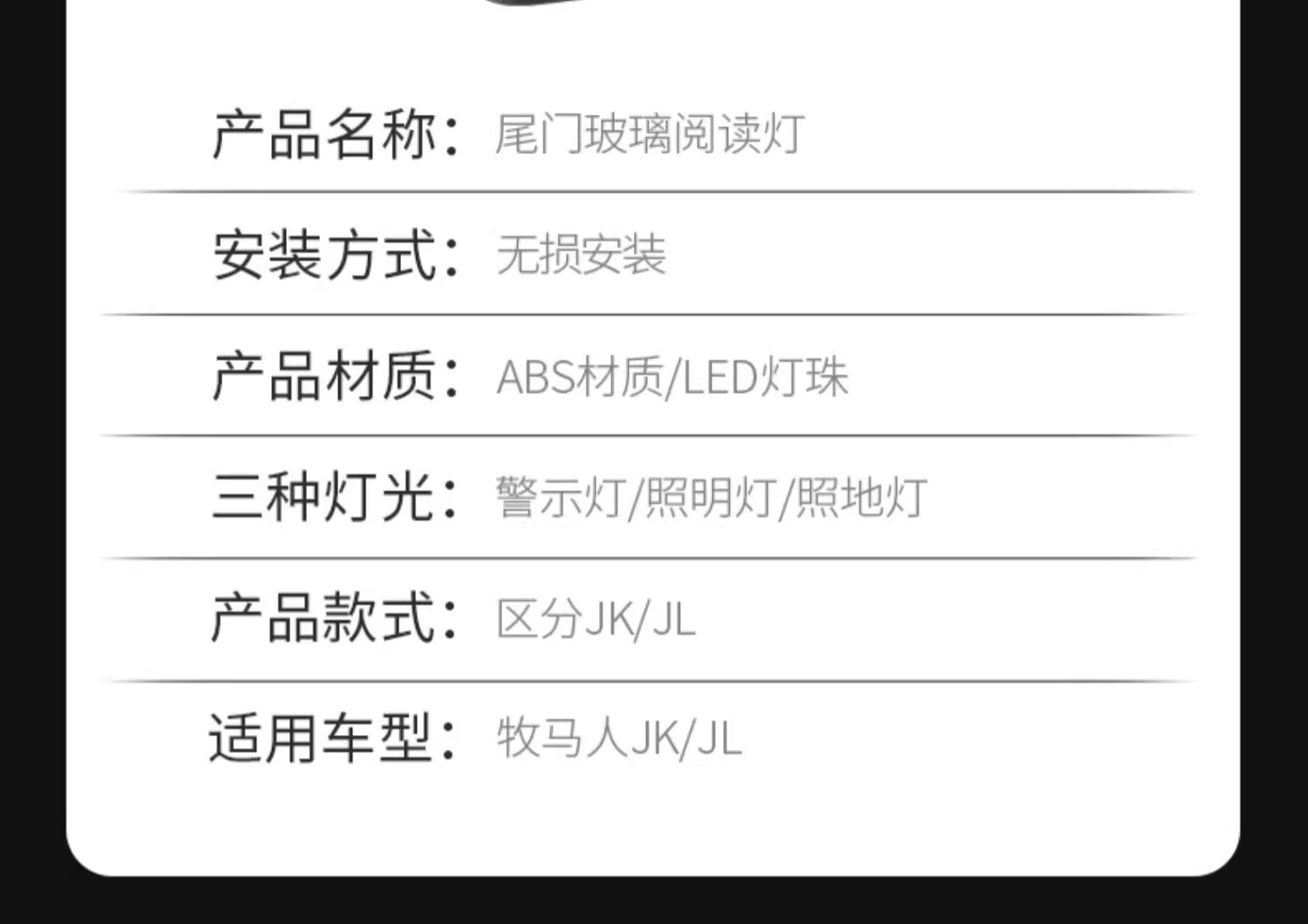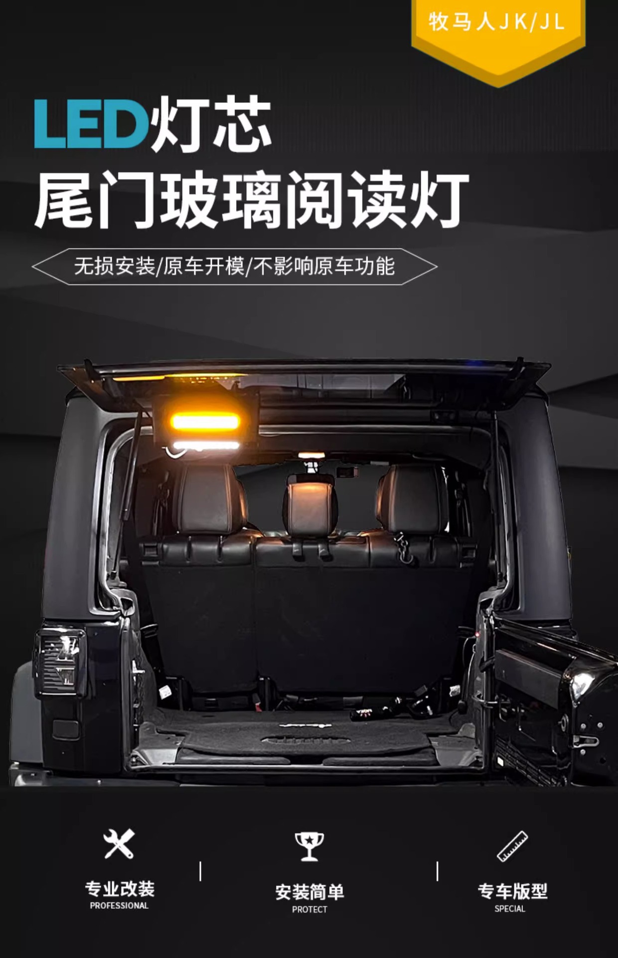Tags: camping lamp, cargo area lighting, rear glass light, tailgate light, trunk reading light, warning signal light, wrangler accessories