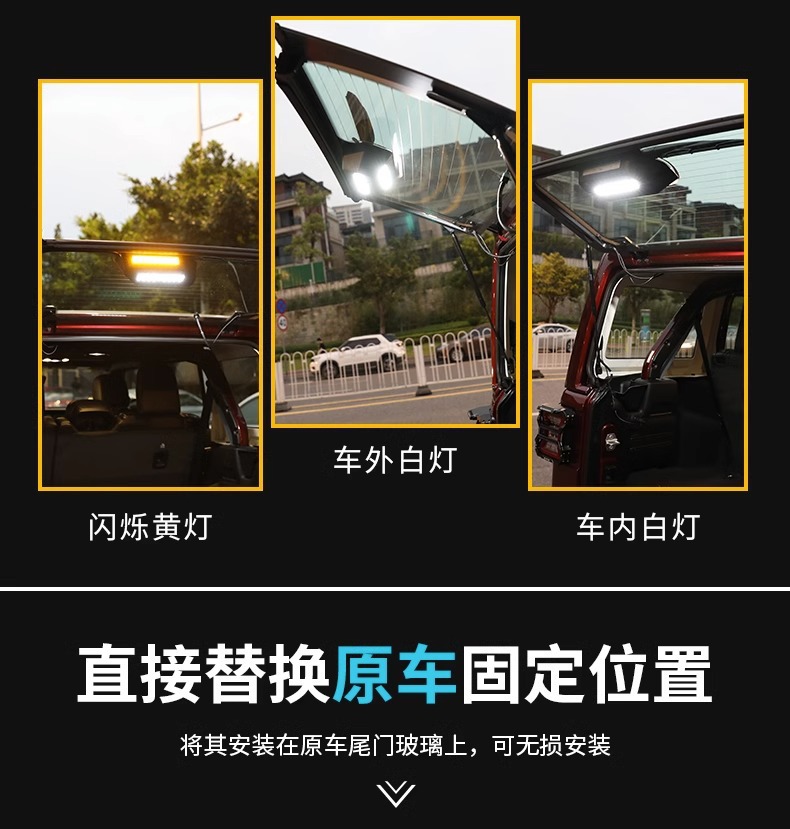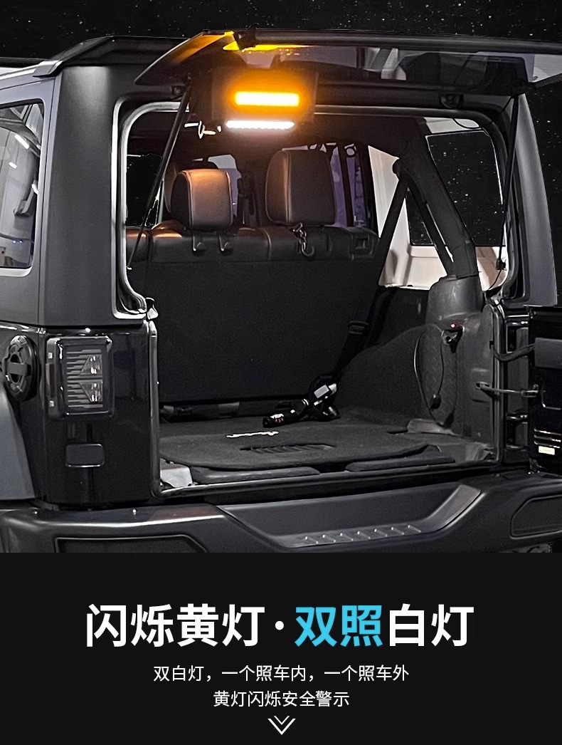 Enhance your camping experience with this Tailgate Reading & Warning Light for Wrangler 2007-2023. Dual-mode LED lighting for safety and trunk convenience.