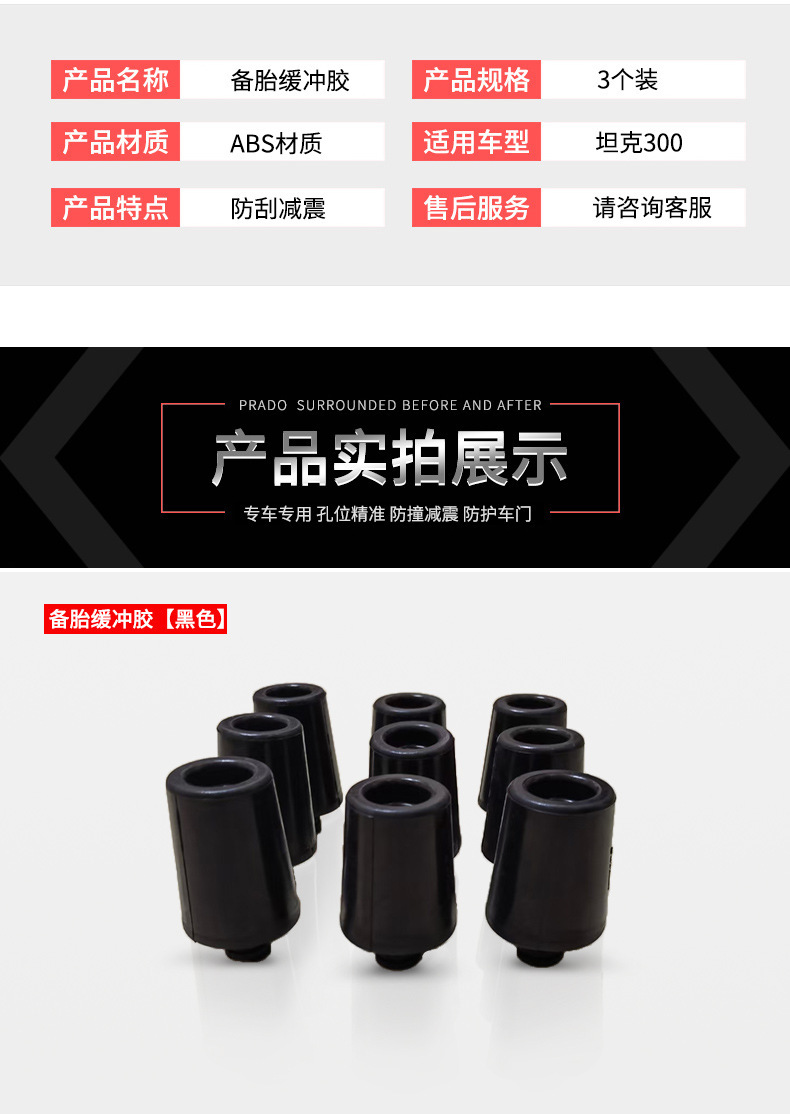 Protect your rear gate with heavy-duty rubber spare tire buffer pads. Designed for 3-point support to reduce vibrations and noise while driving off-road.