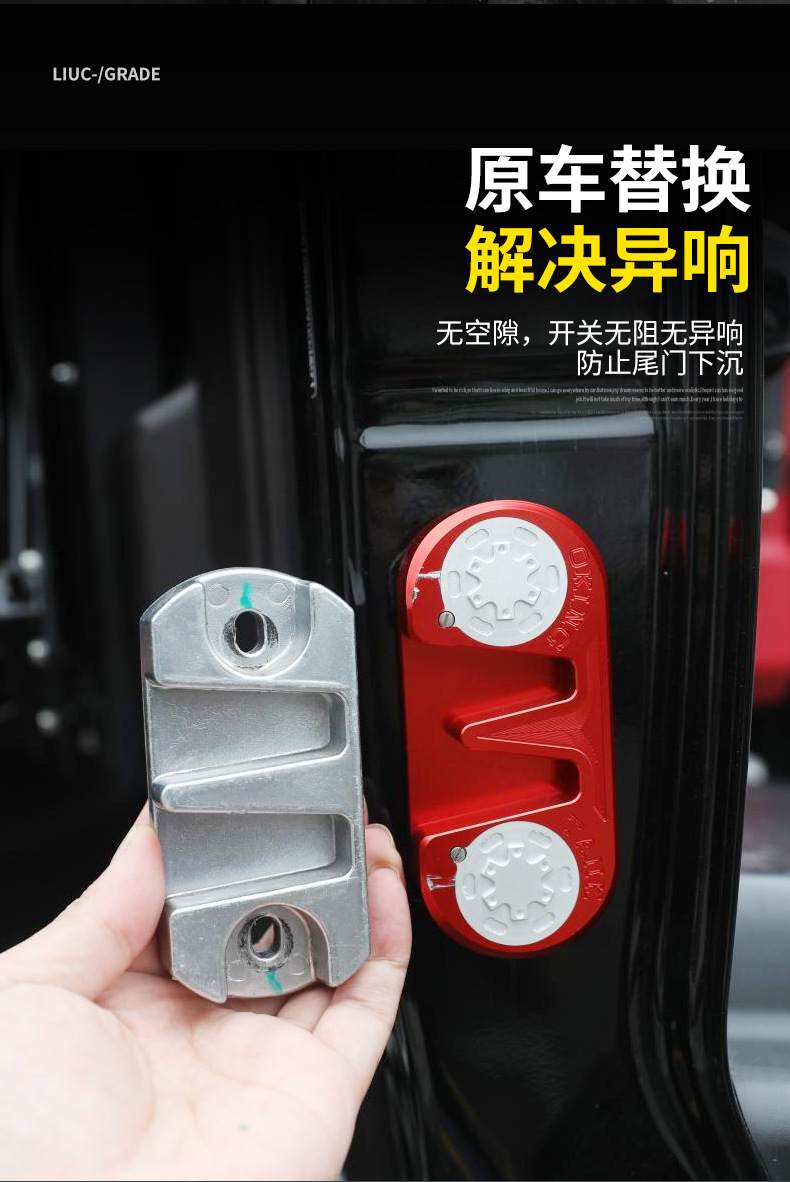 Upgrade your vehicle with this premium aluminum alloy tailgate stopper. Eliminates abnormal noise, prevents door sagging, and ensures a secure, quiet lock fit.