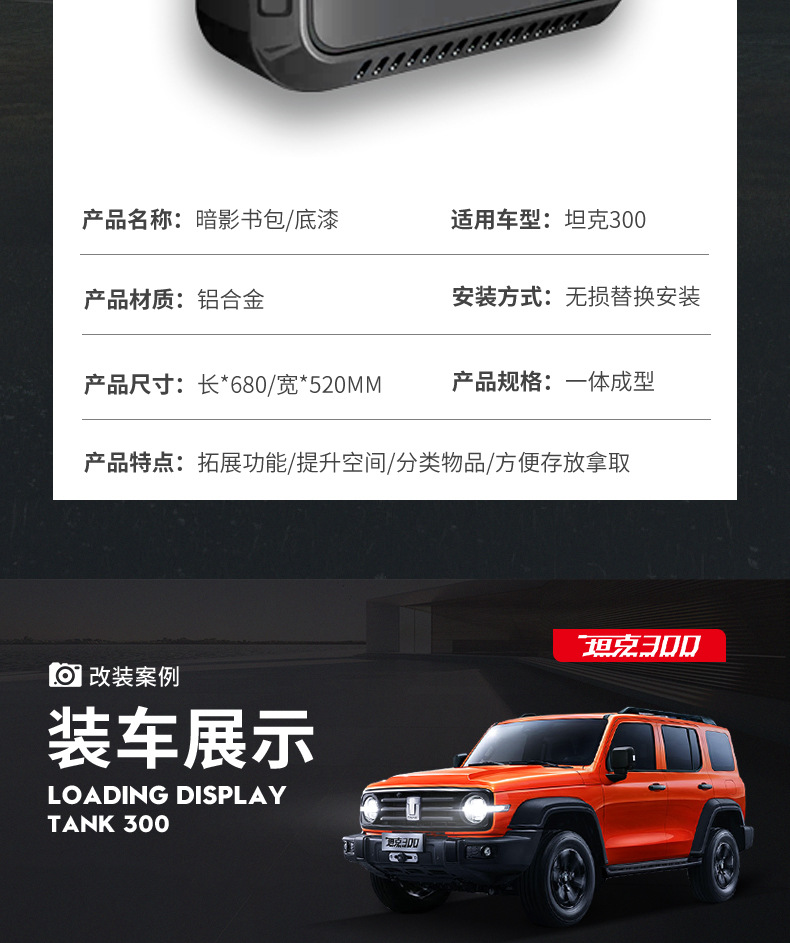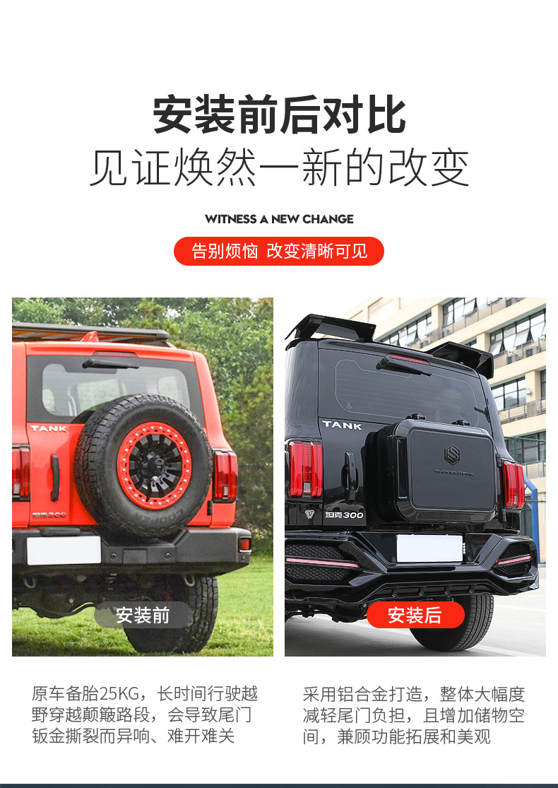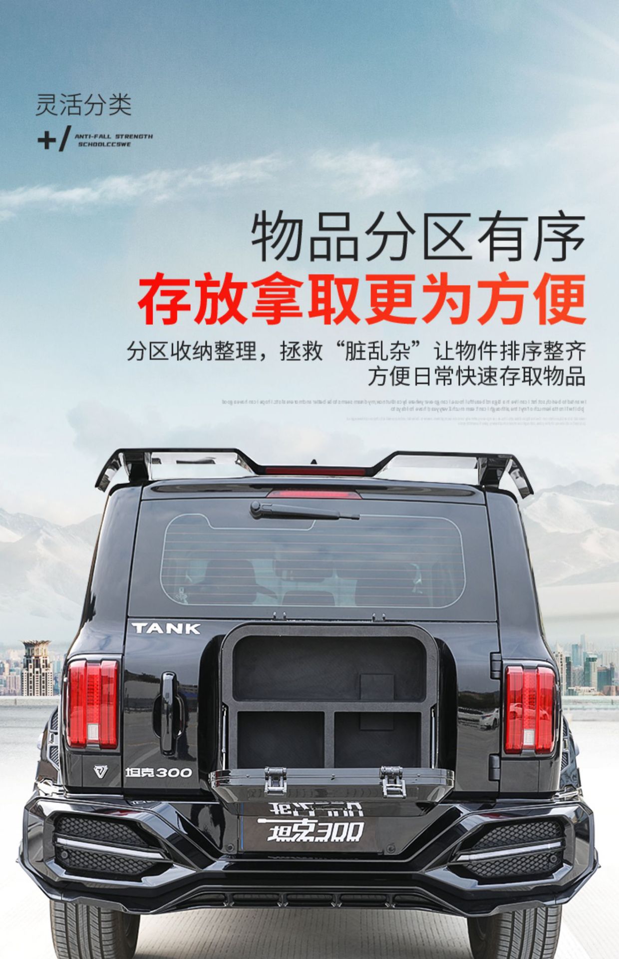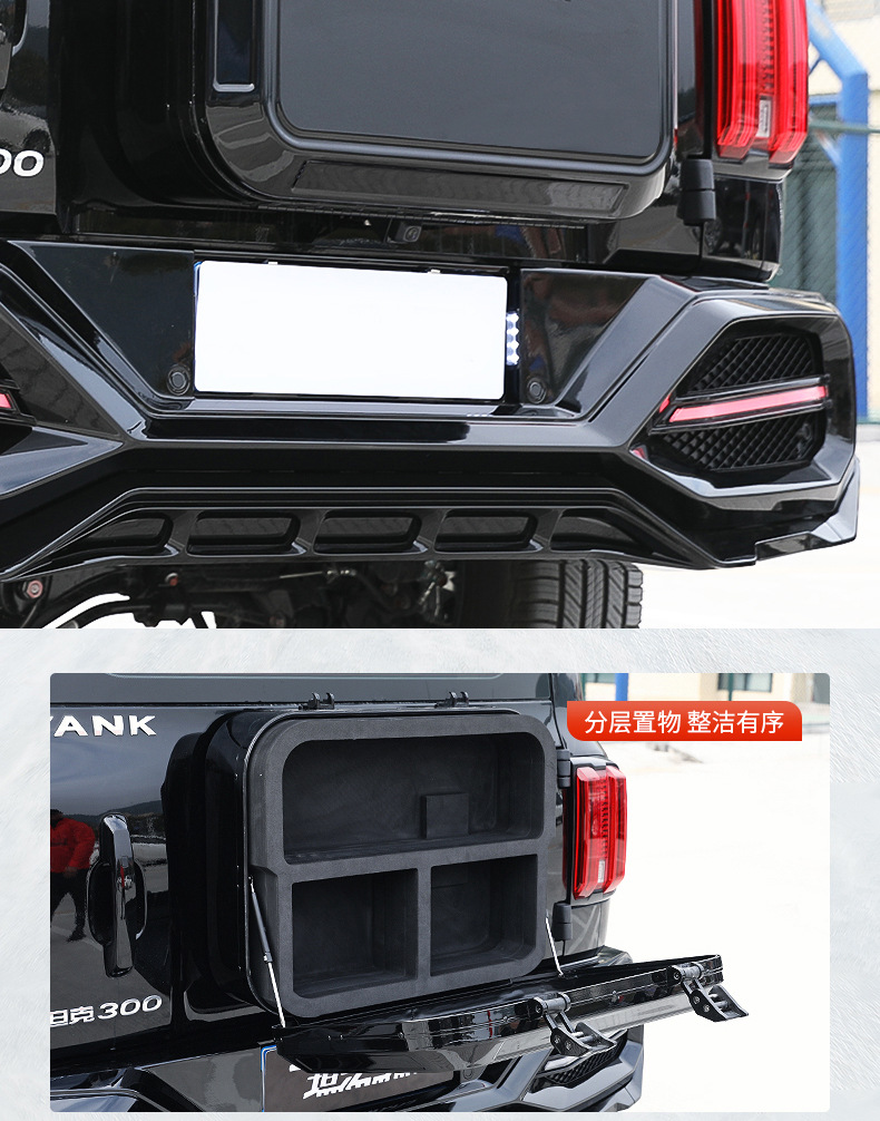 Tailgate Storage Box for Spare Tire Carrier Multi-Functional Rear Door Organizer Compatible with Tank 300 Off-Road Accessories