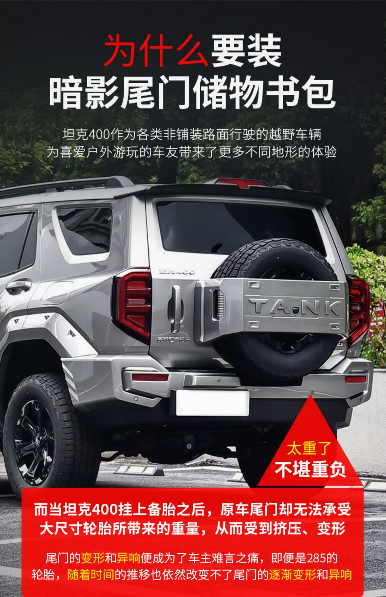 Tailgate Storage Organizer Box, Multi-Functional Exterior Shadow Spare Tire Expansion Pack for Tank 400 Hi4-T