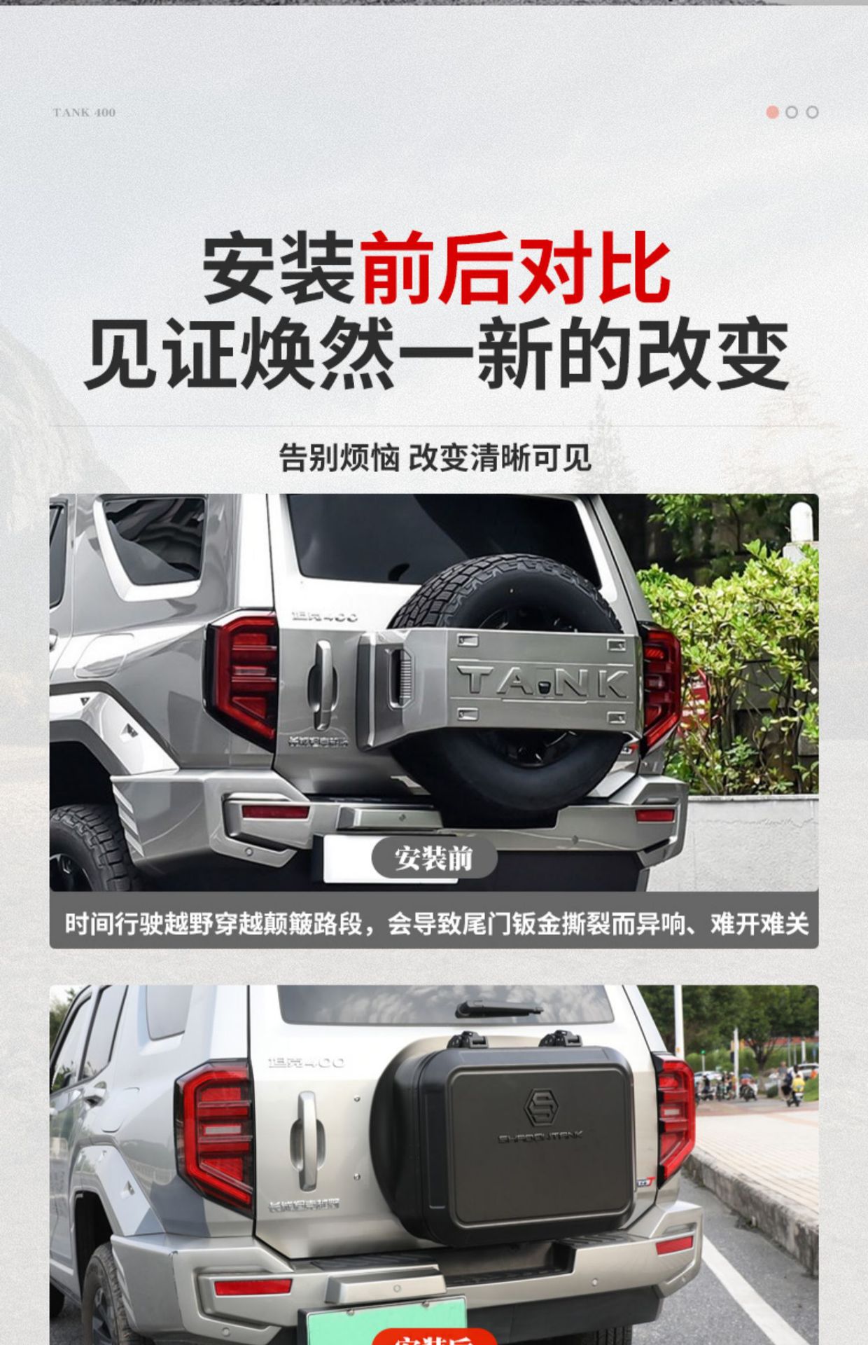 Upgrade your Tank 400 Hi4-T with this multi-functional tailgate shadow storage box. Durable, weather-resistant expansion pack for tools and off-road essentials.