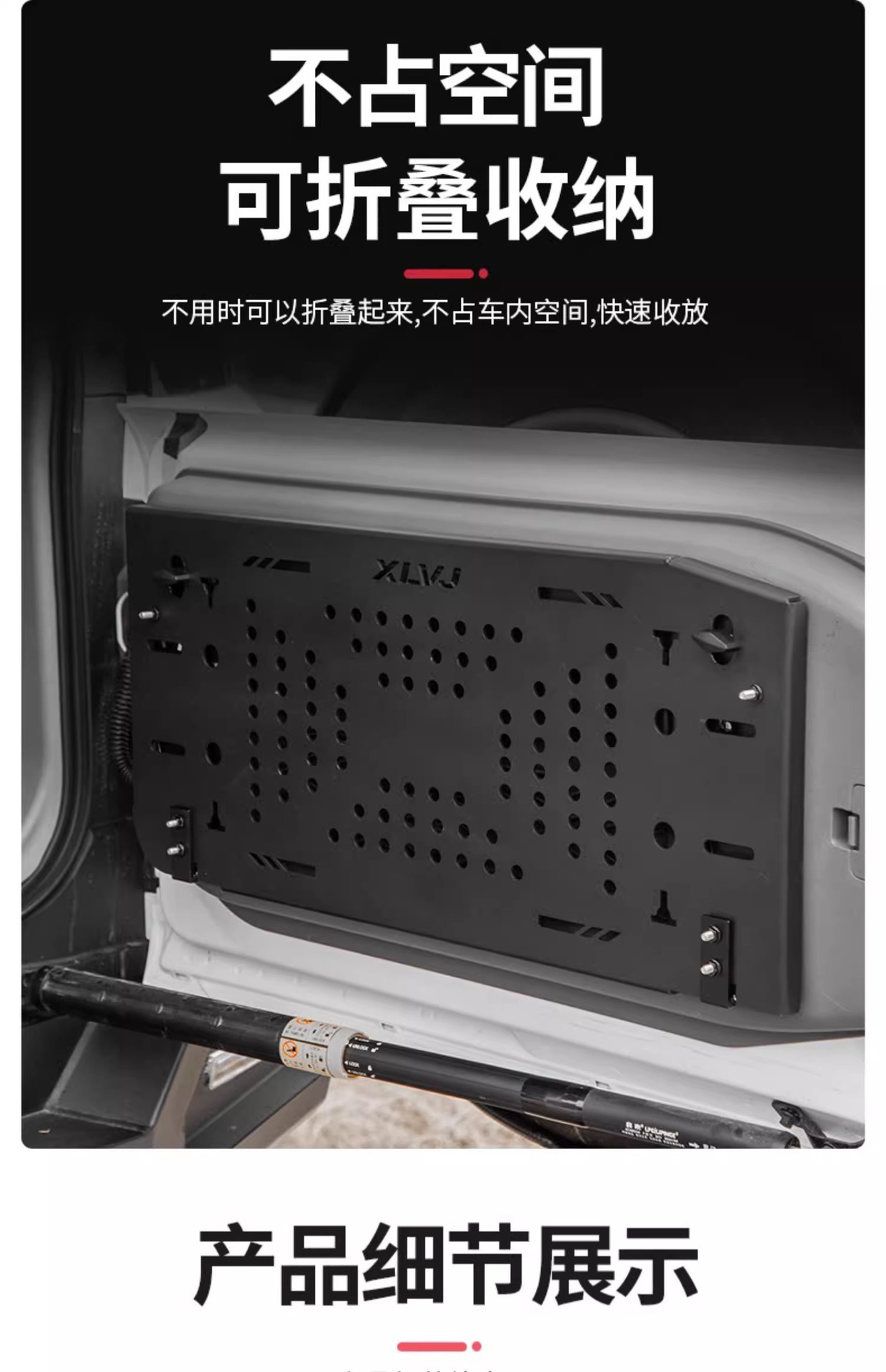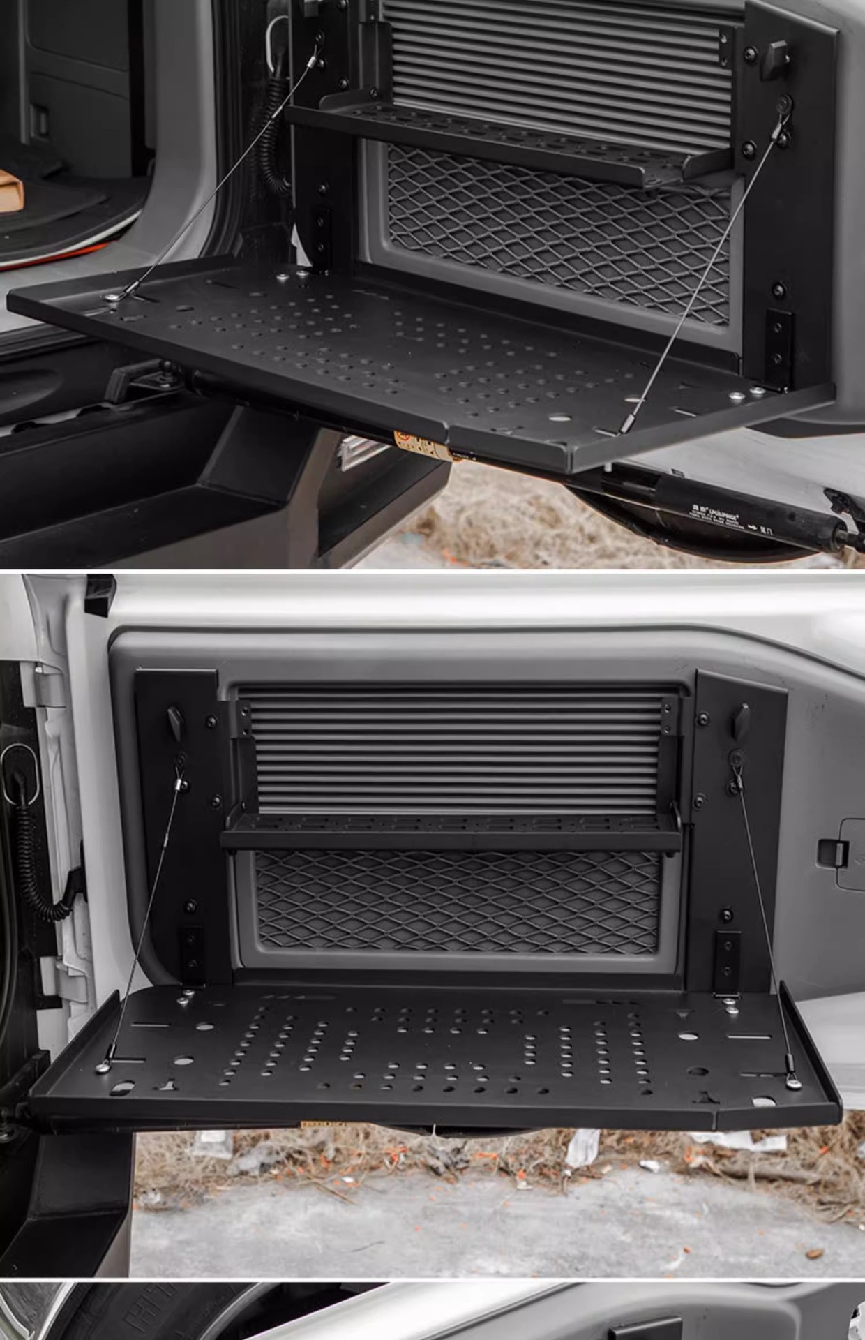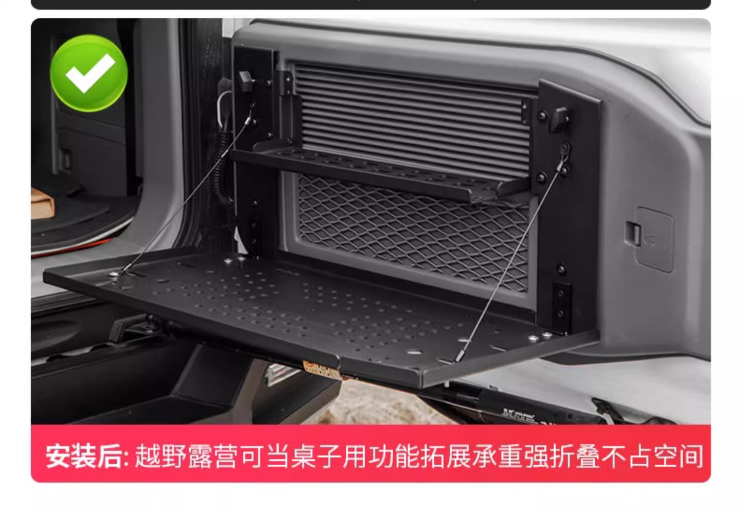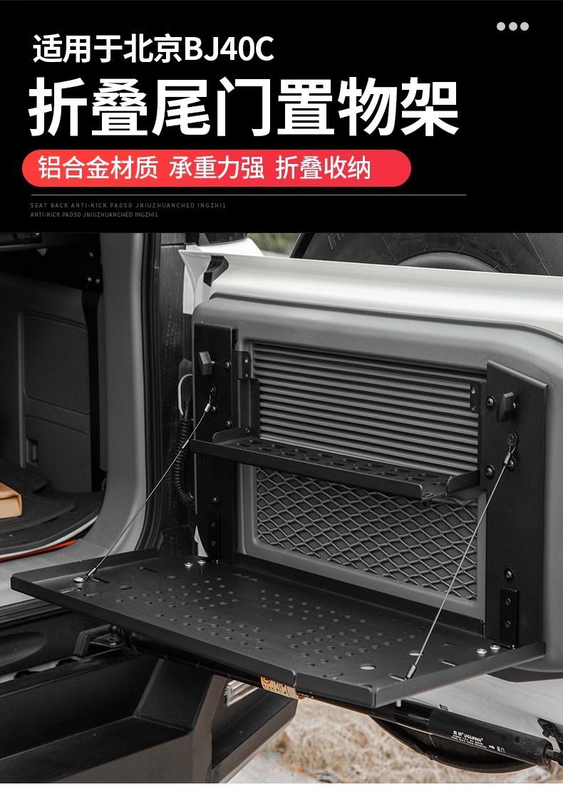 Tags: BJ40 accessories, camping table, foldable cargo shelf, off-road gear, rear door organizer, tailgate table, trunk storage rack