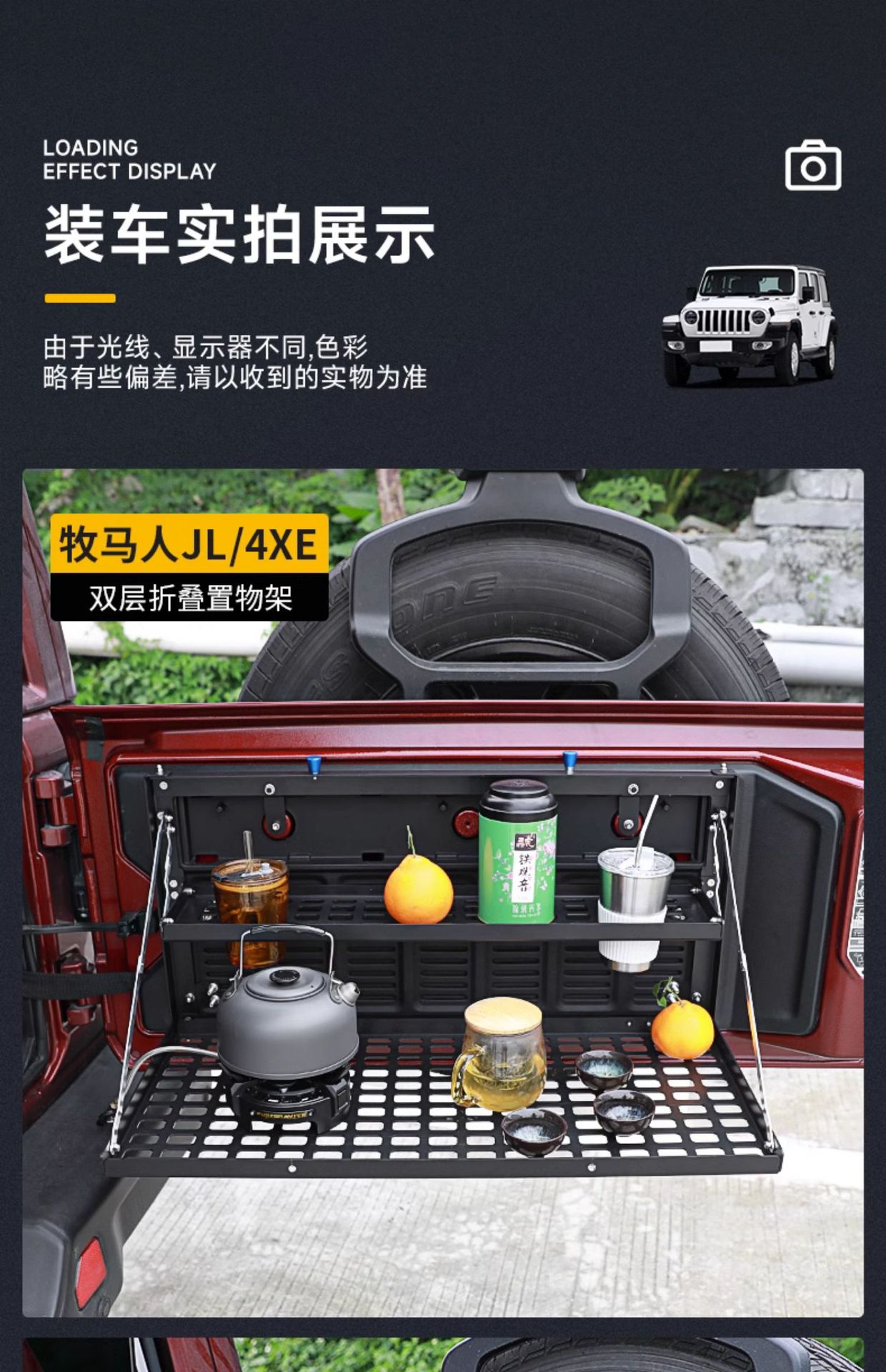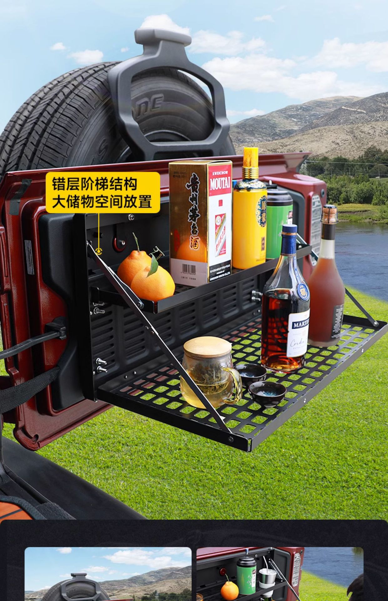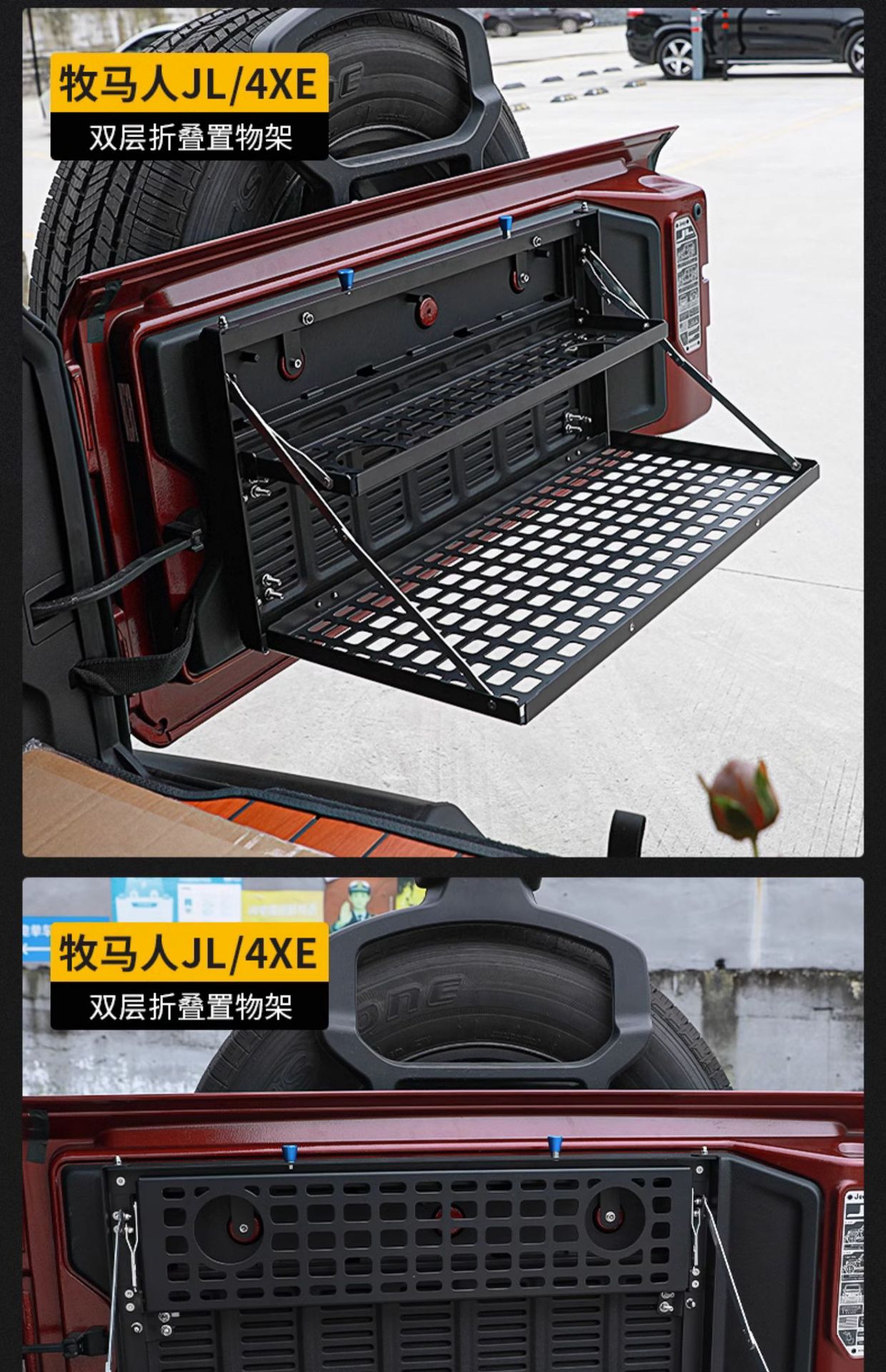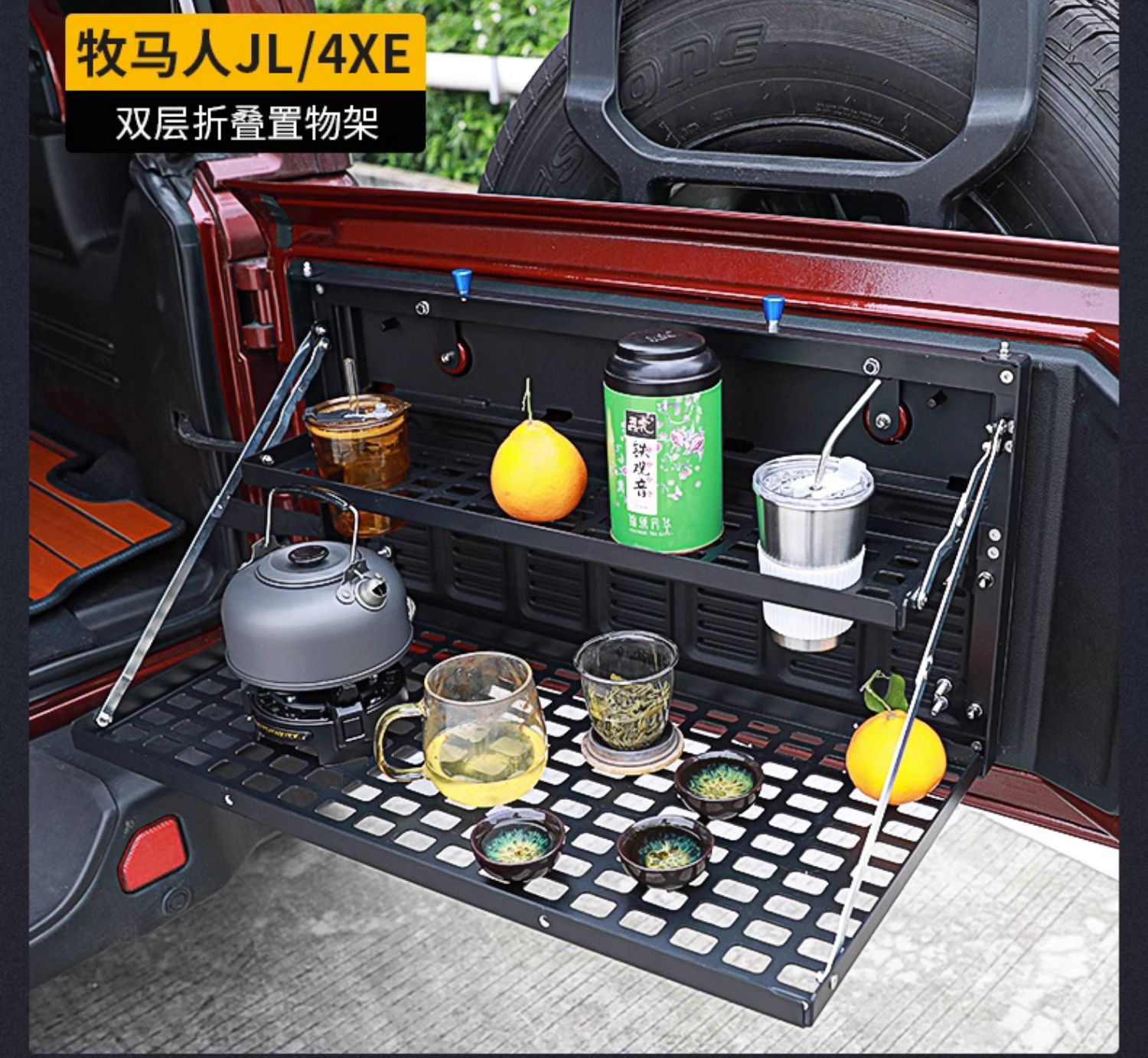 Tags: camping platform, folding cargo shelf, off-road storage rack, rear trunk organizer, tailgate table, wrangler jk jl accessories