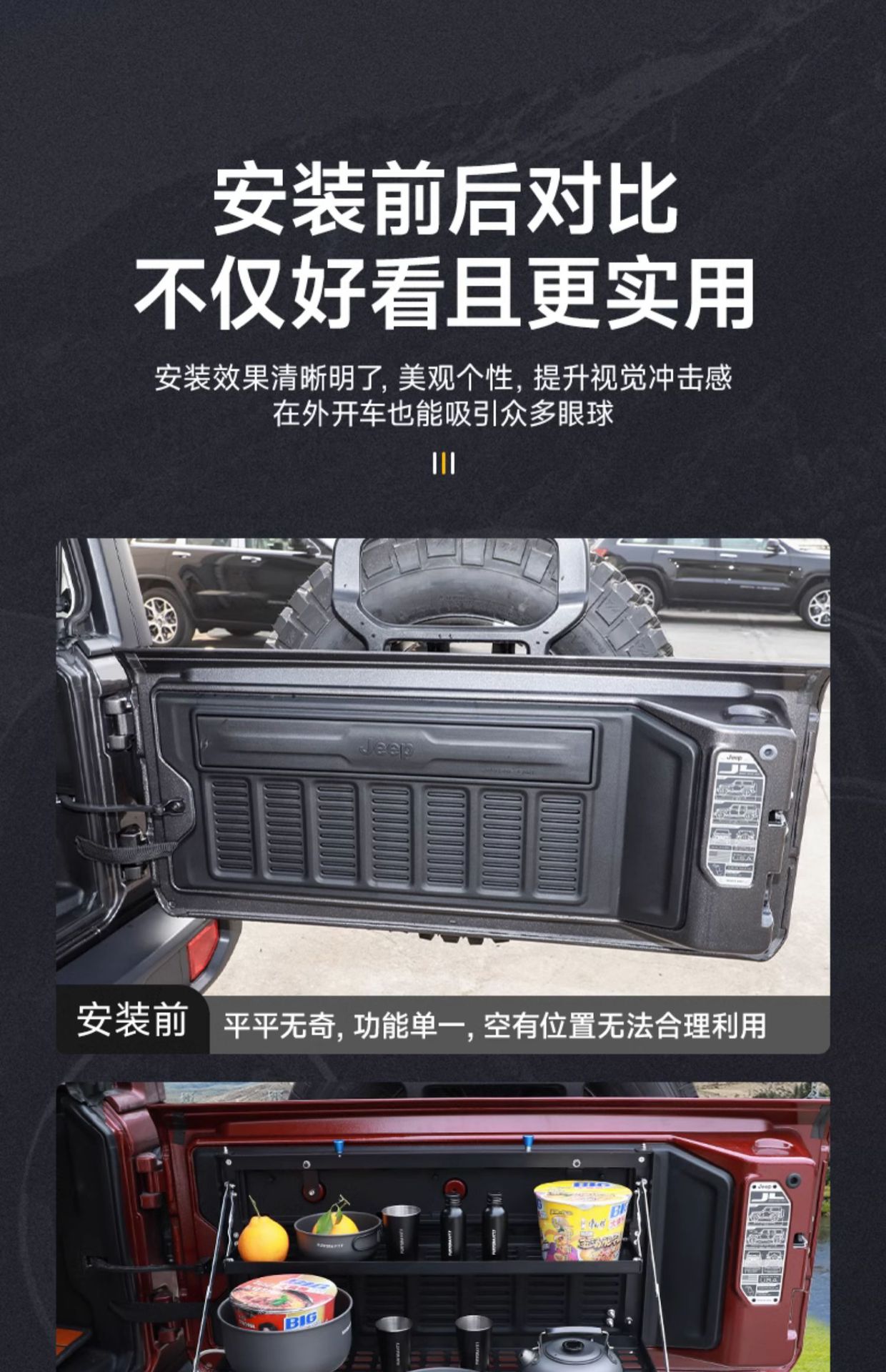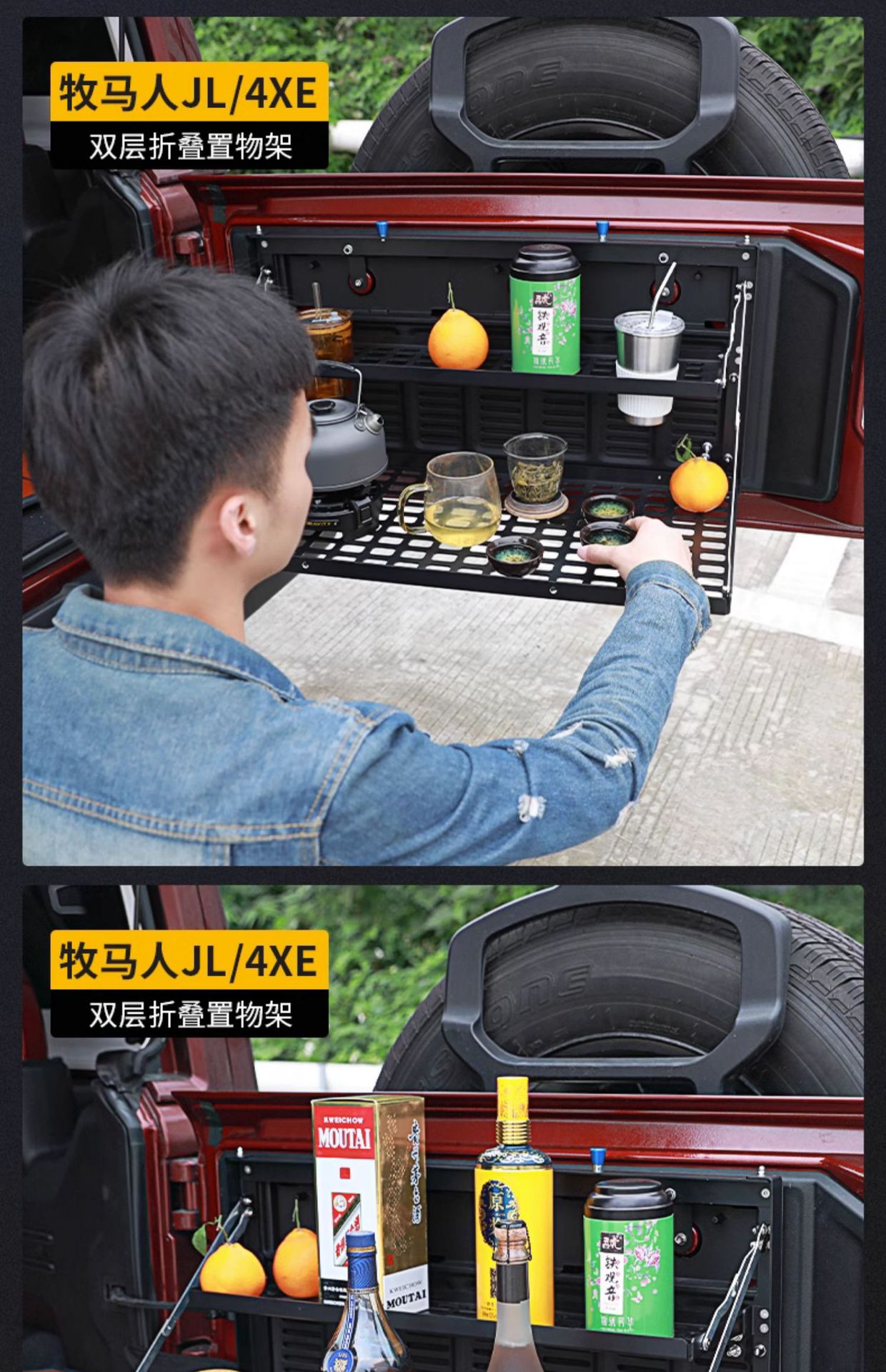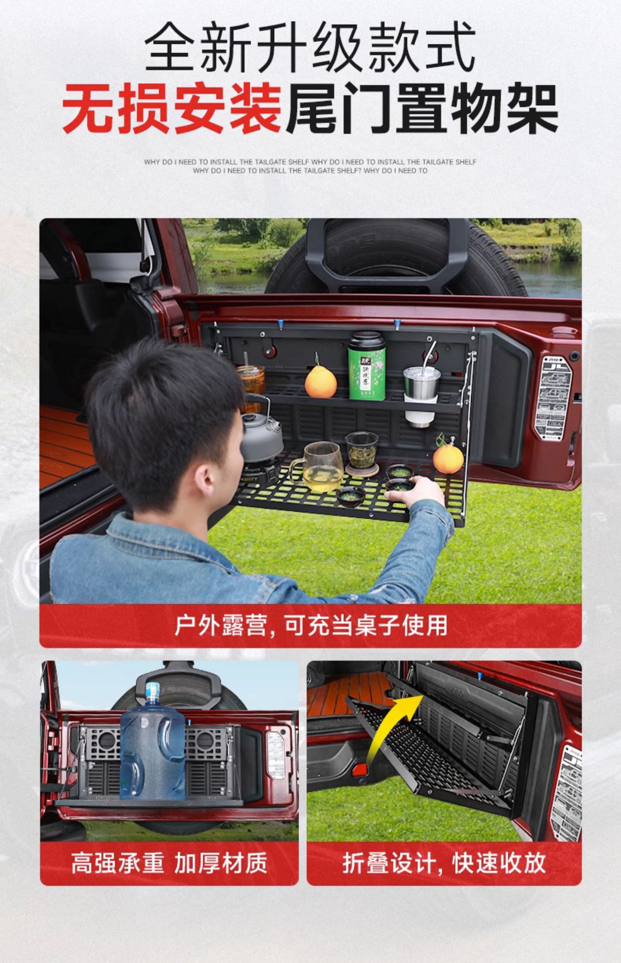 Tags: camping platform, folding cargo shelf, off-road storage rack, rear trunk organizer, tailgate table, wrangler jk jl accessories