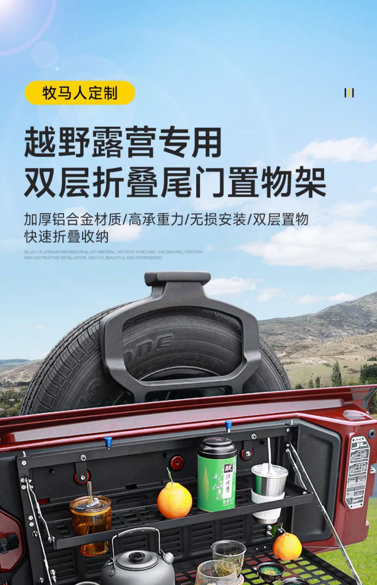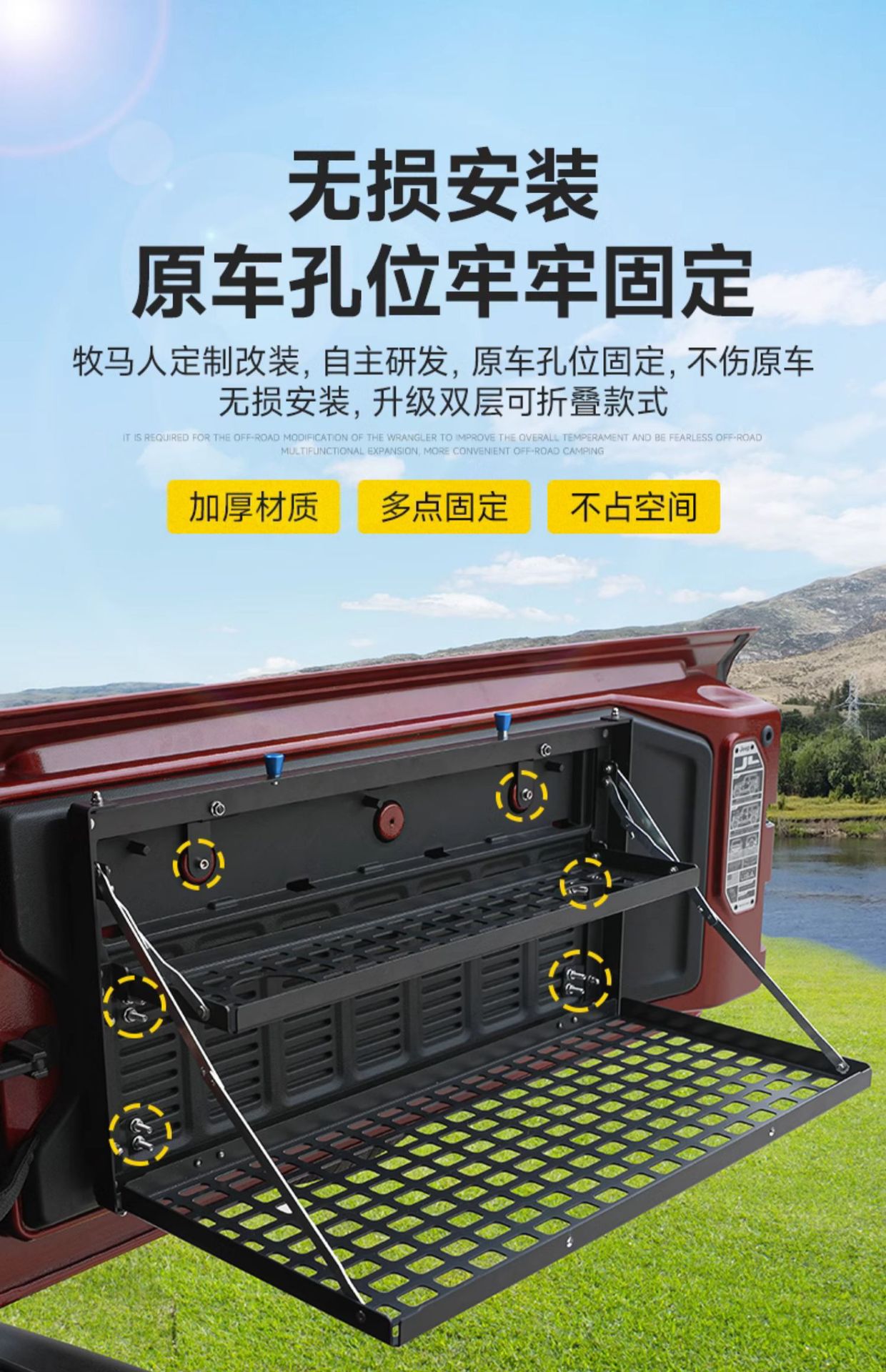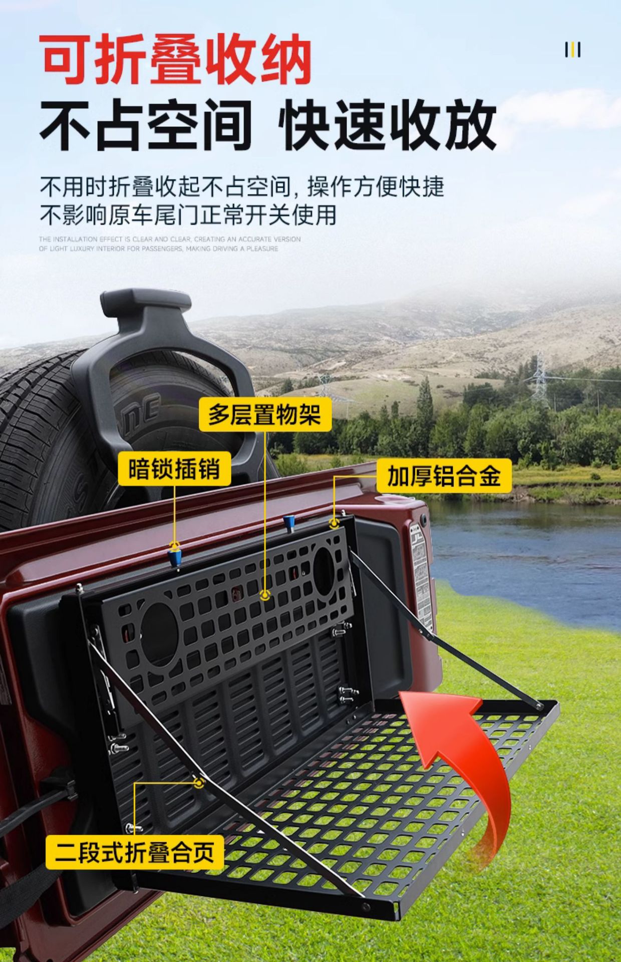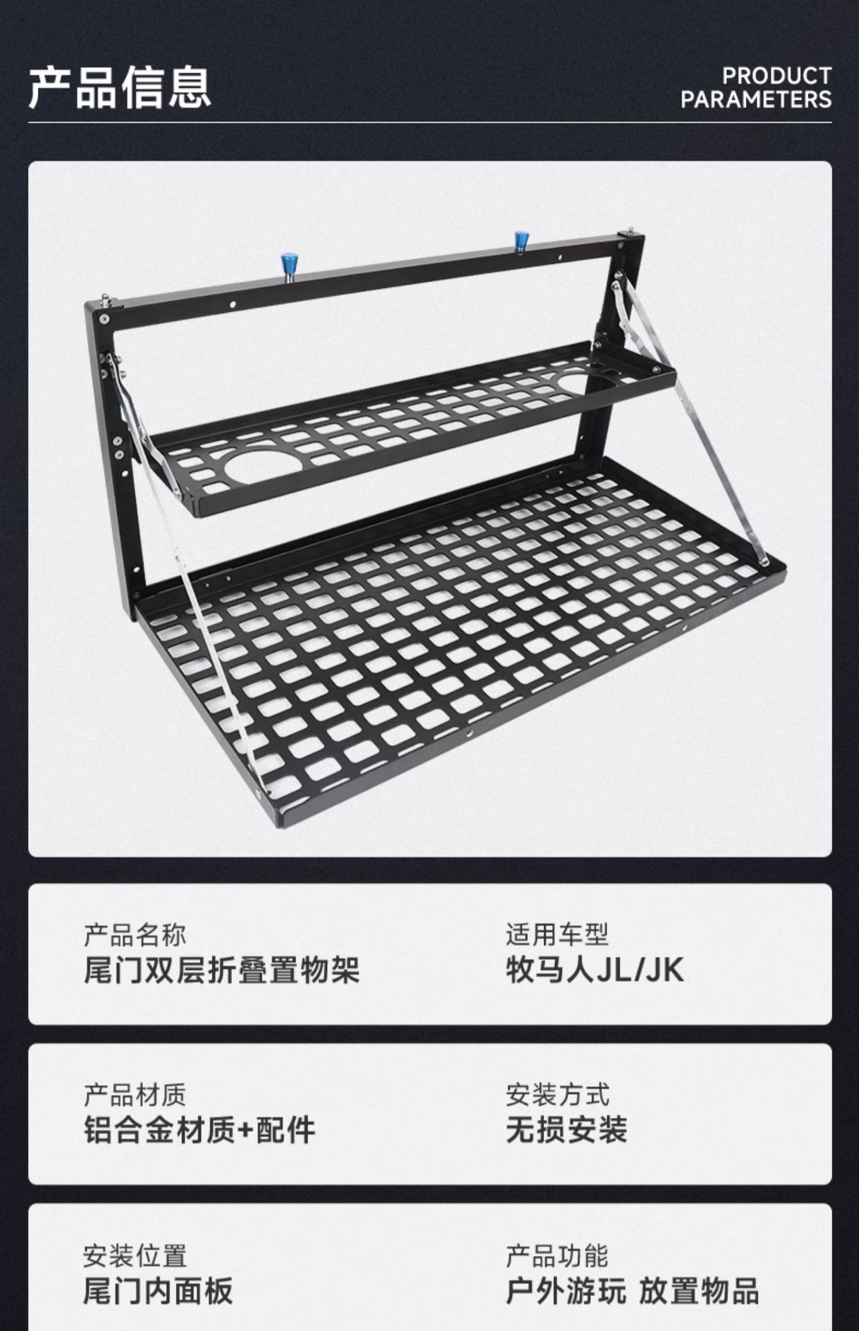 Tags: camping platform, folding cargo shelf, off-road storage rack, rear trunk organizer, tailgate table, wrangler jk jl accessories