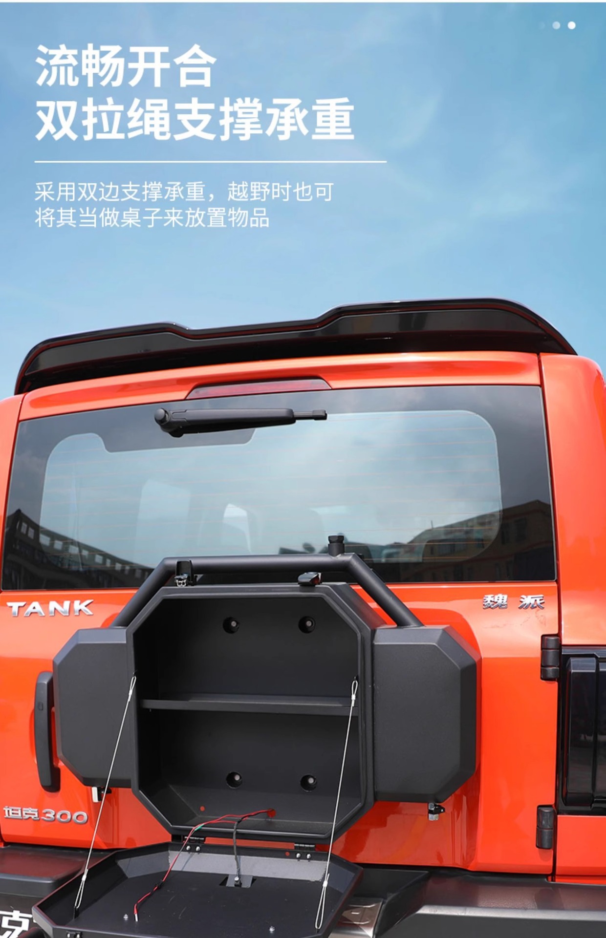 - Custom fits the rear tailgate of the Tank 300 for seamless integration and maximum utility.