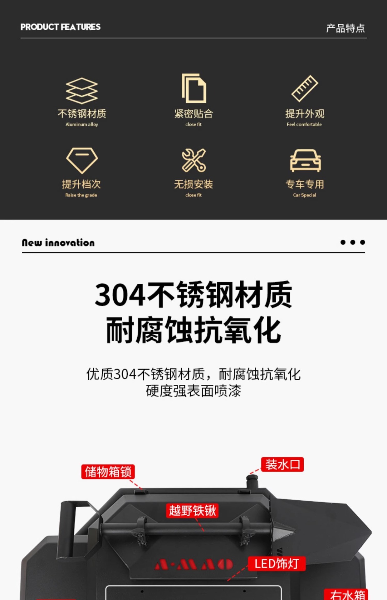 Tags: exterior cargo carrier, off-road storage box, stainless steel water tank, tactical gear storage, tailgate organizer, vehicle trunk expansion