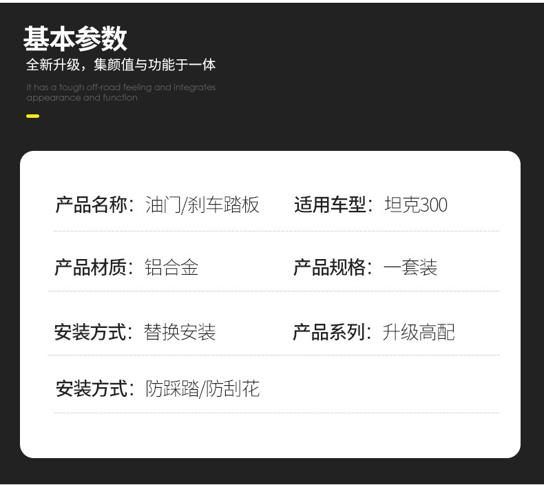 Be the first to review “Tank 300 accelerator pedal brake anti-skid pedal modified aluminum alloy car interior supplies non-destructive decoration accessories” Cancel reply