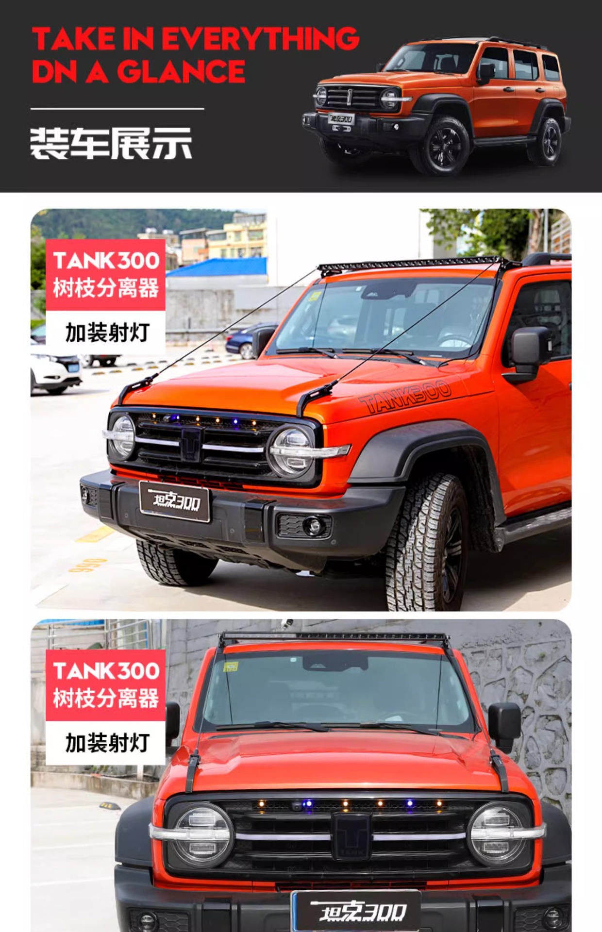 Tank 300 Branch Separator Modification Cover Roof Spotlight Bracket Off-road Leaf Split Obstacle Accessories